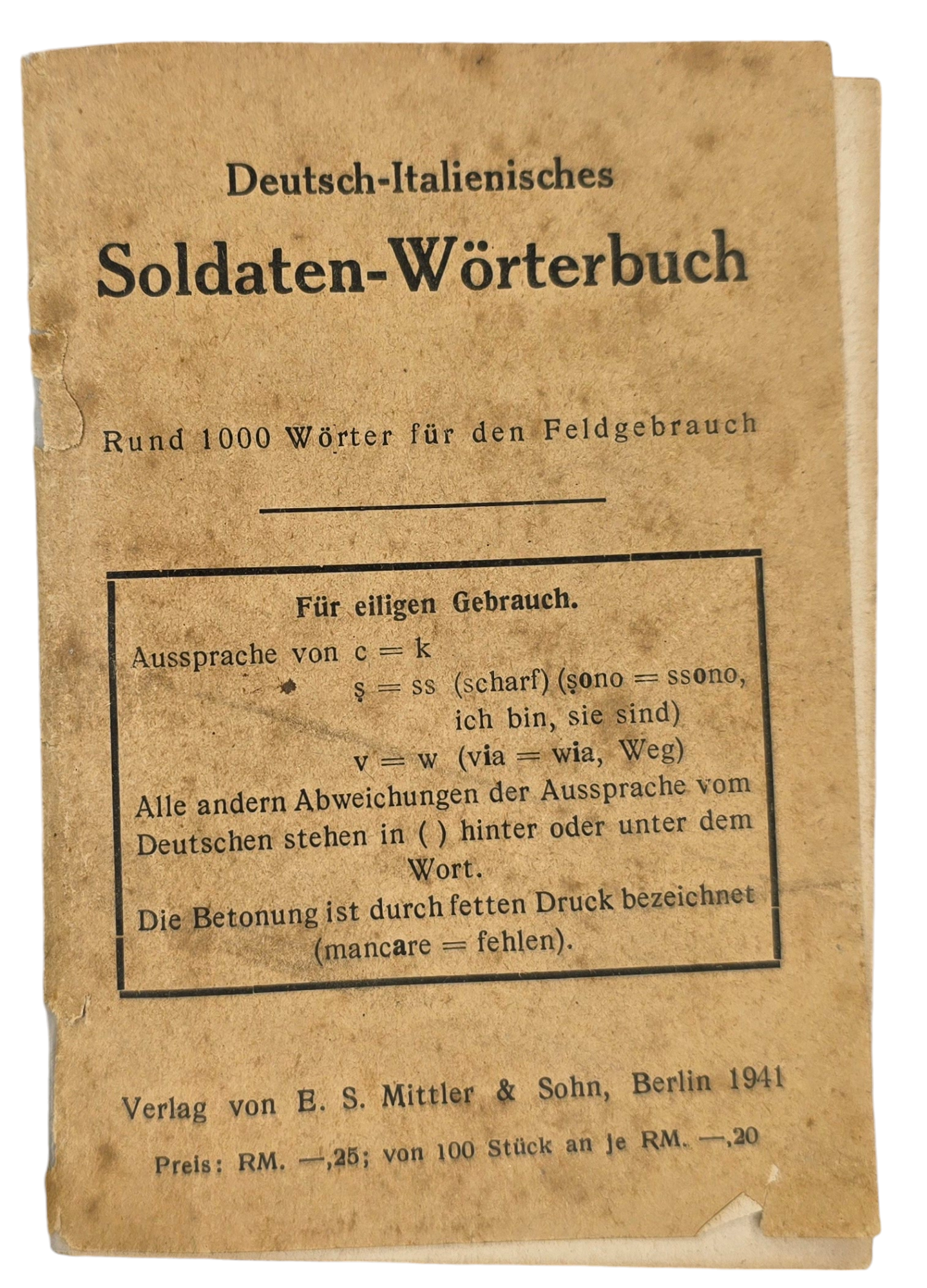 Original WW2 German Document - Deutsch-Italienisches Soldaten-Wörterbuch, Dictionary (1941)