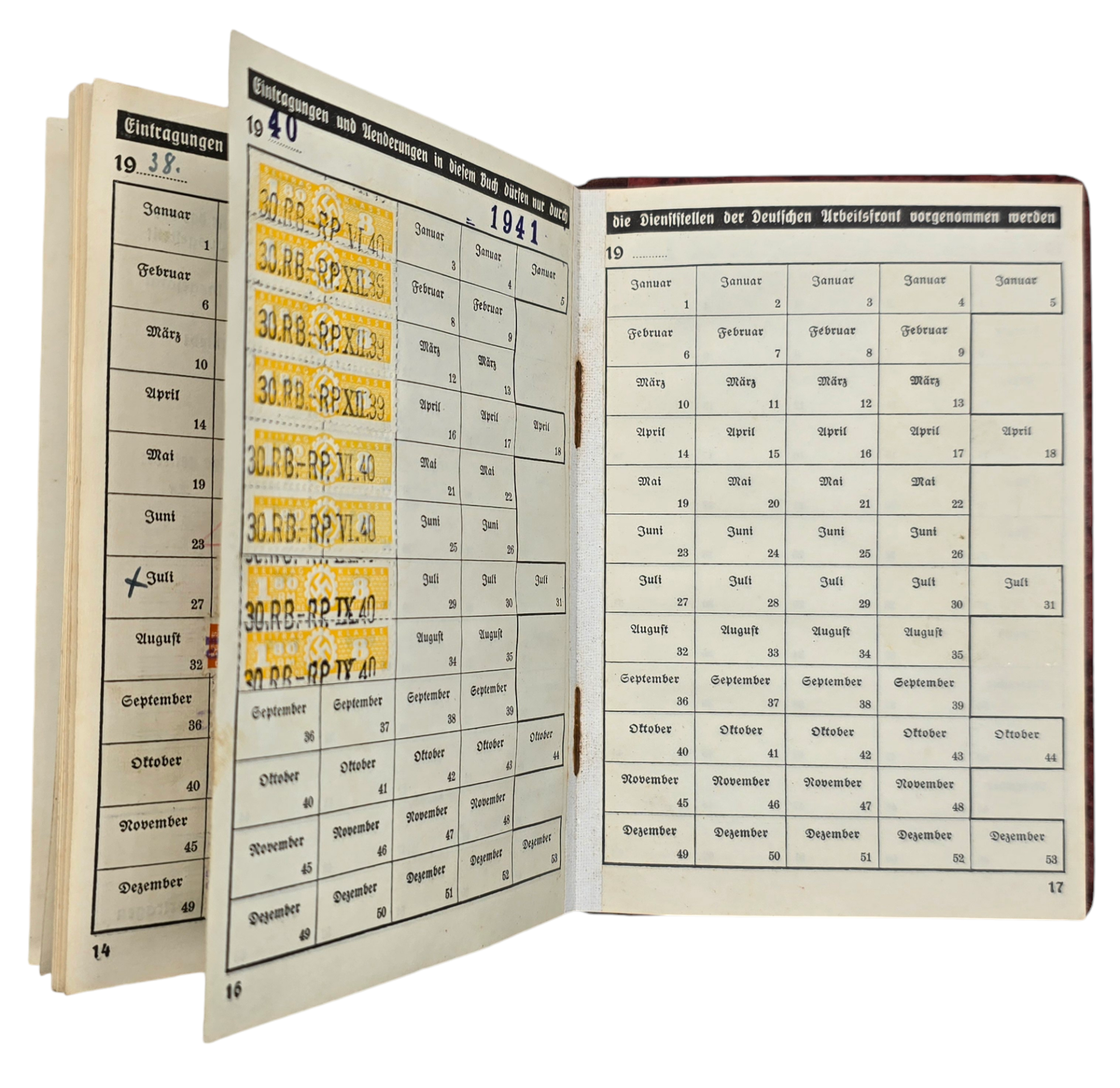 Original WW2 German Document - DAF Deutsche Arbeitsfront Mitgliedsbuch, Ossendorf Westfalen (1938)