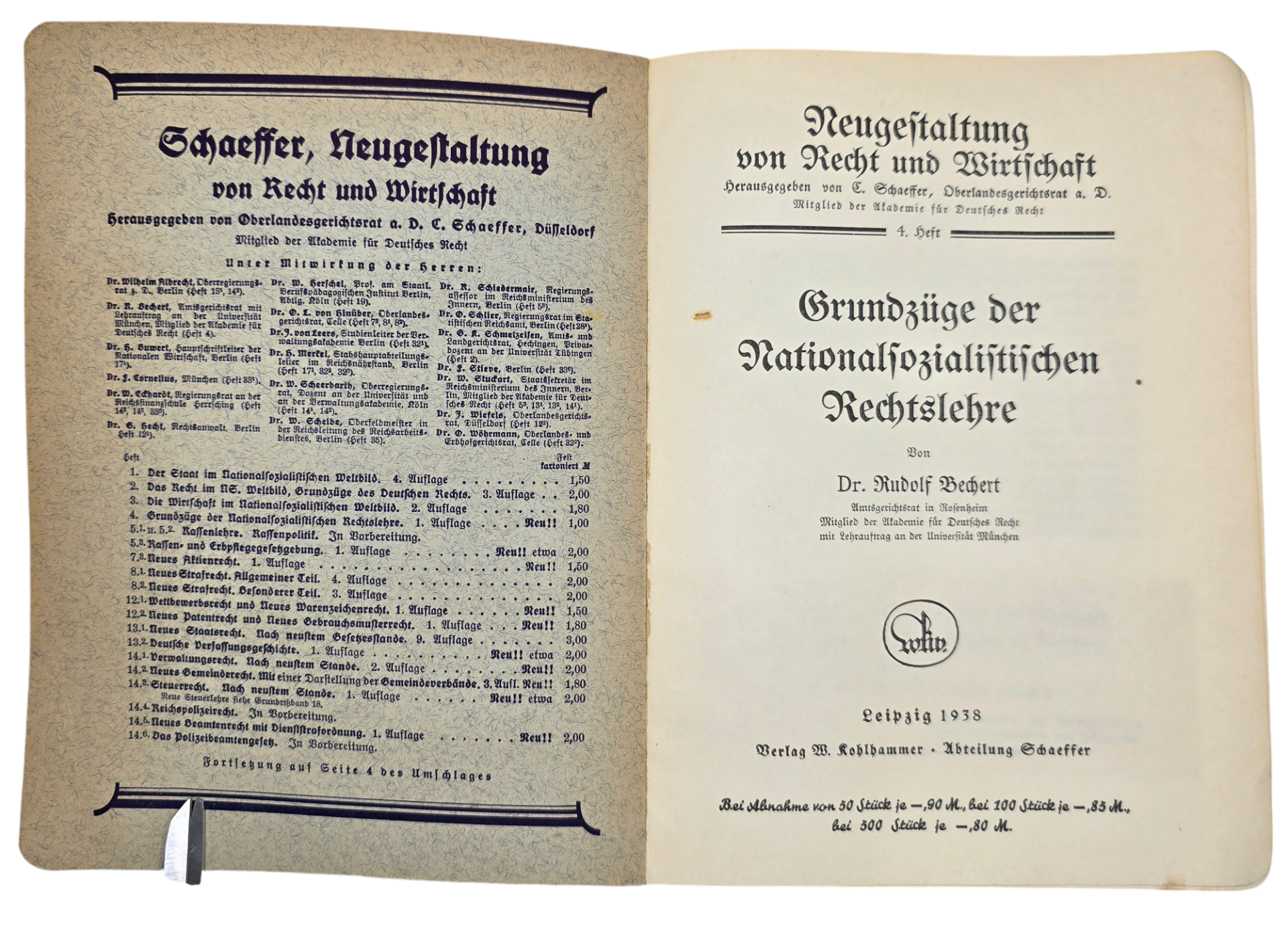 Original WW2 German Brochure - Grundzüge der Nationalsozialistischen Rechtslehre, Dr. Rudolf Bechert (1938)