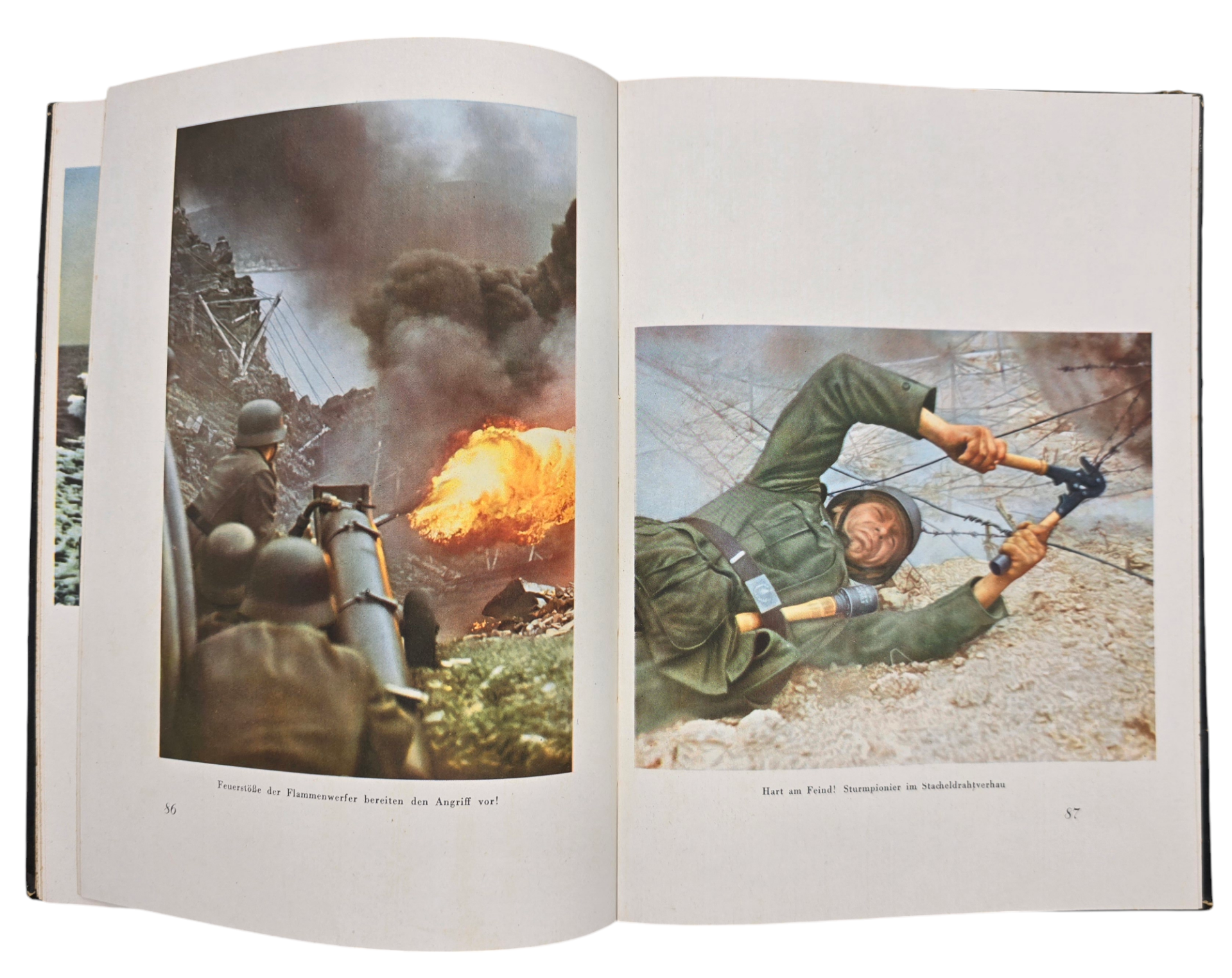 Published in 1943 by Max Beck Verlag, Leipzig. This is a very interesting photobook with many colorized pictures inside. It is in fine condition, on the backside there is some damage to the binding, see last picture top right corner.