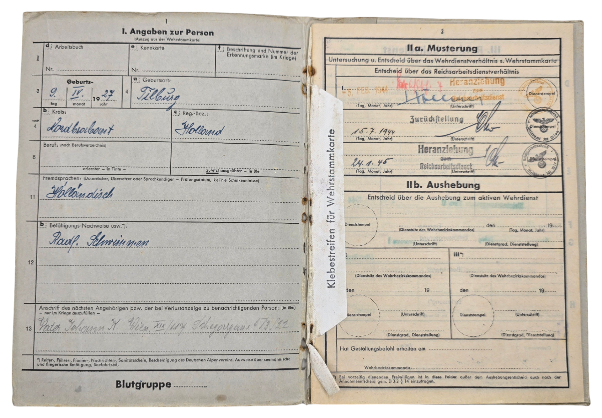 Original WW2 German Document - Wehrstammbuch set Dutchman, Tilburg (1944 1945)