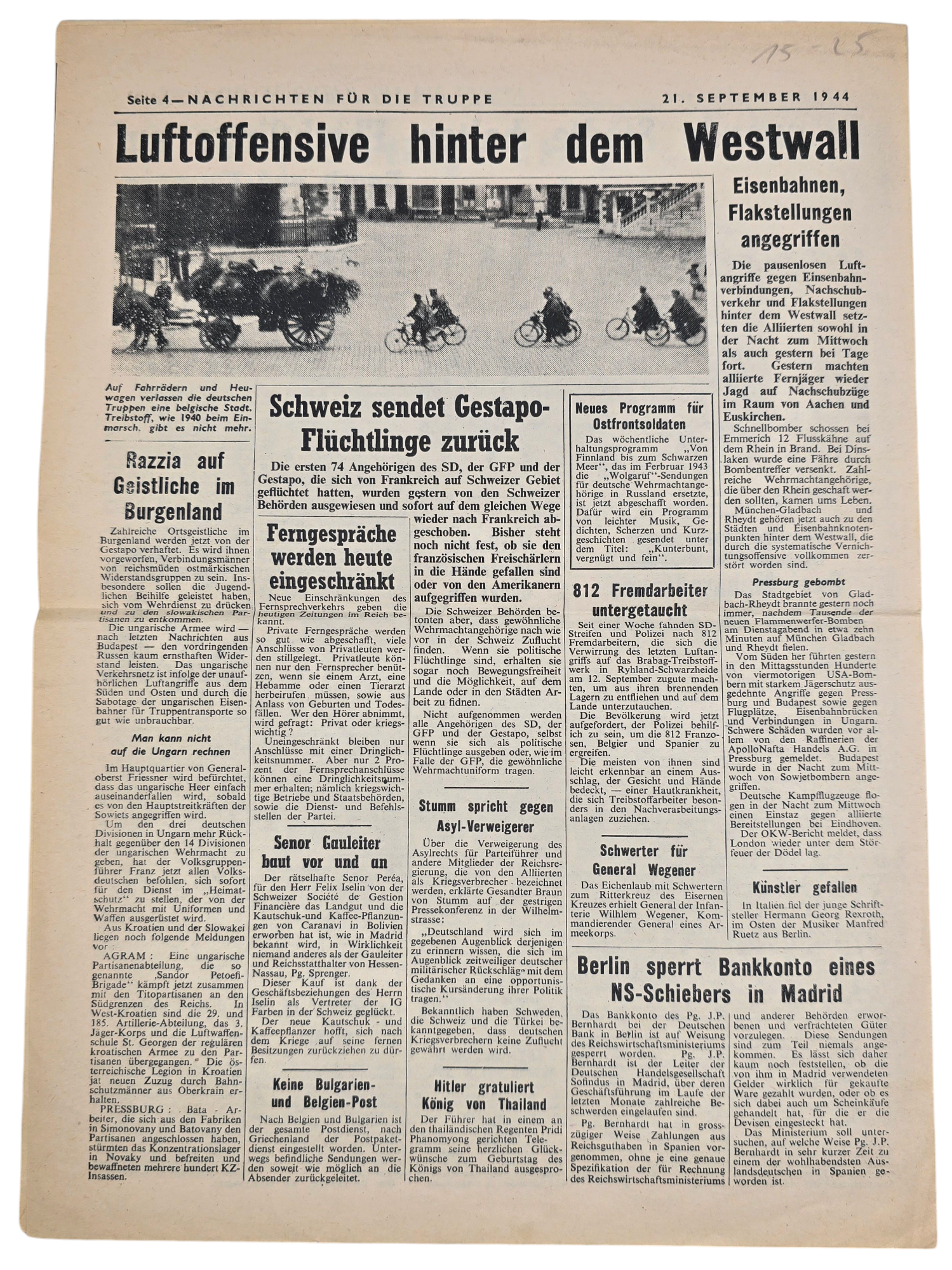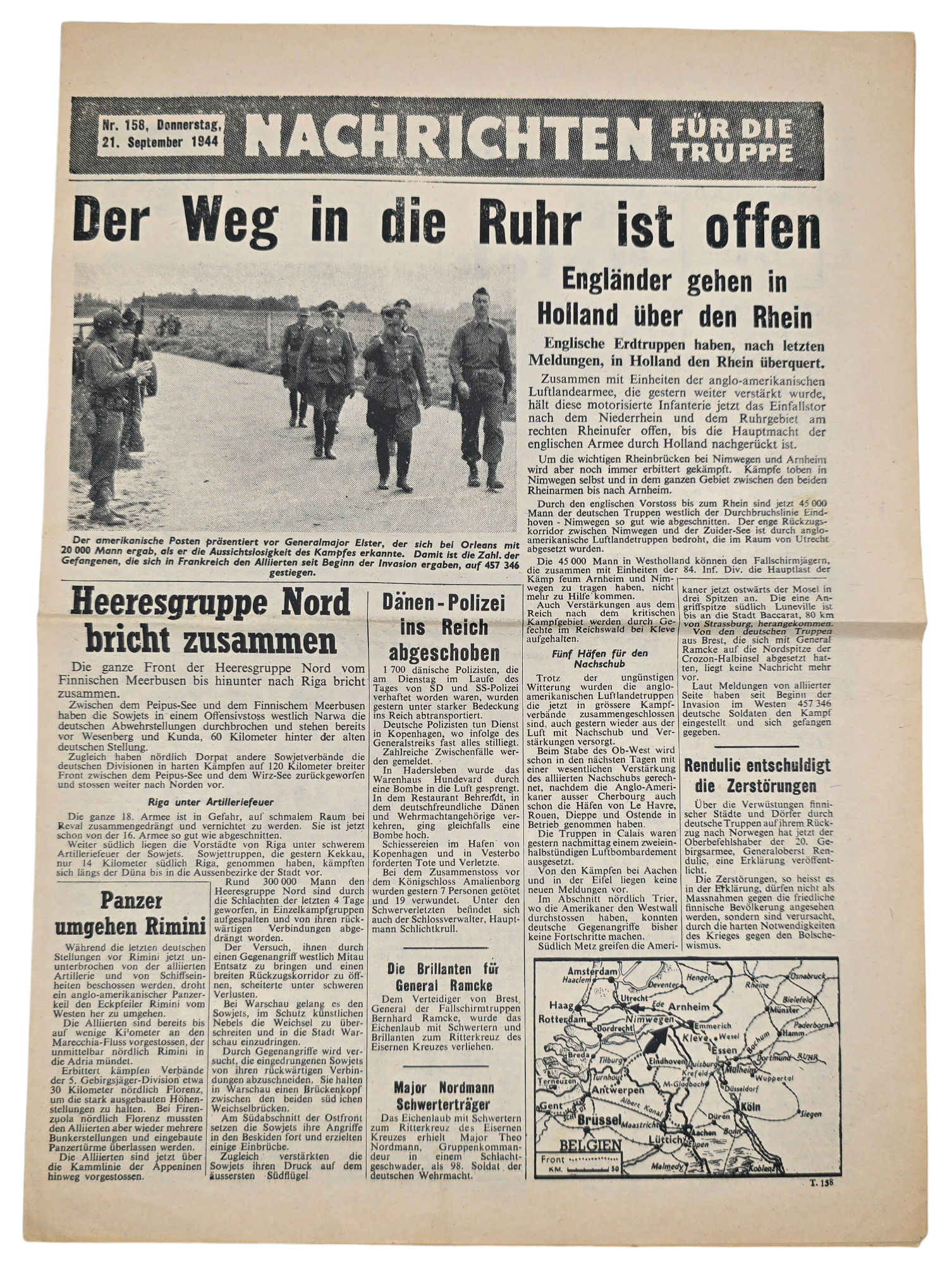 Original WW2 British Leaflet - Nachrichten für die Truppe Nr. 158, Arnhem, Nijmegen, Operation Market Garden (1944)