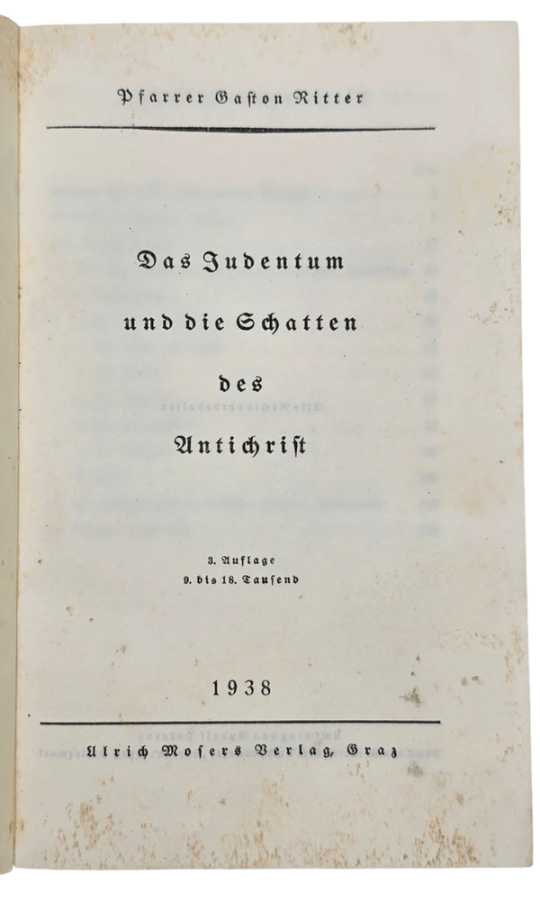 Original WW2 German Antisemitic Book - Das Judentum und die Schatten des Antichrist, Pfarrer Gaston Ritter (1938)