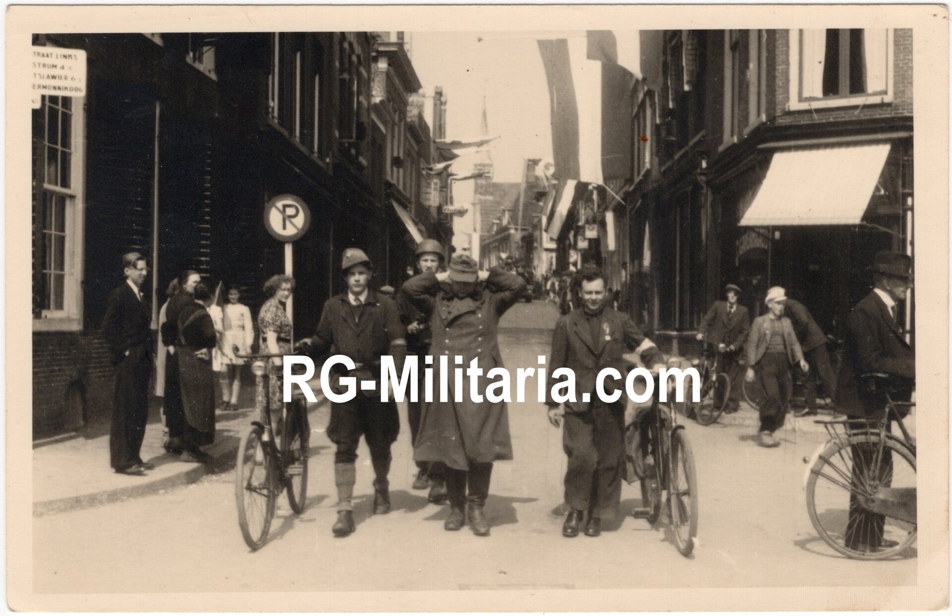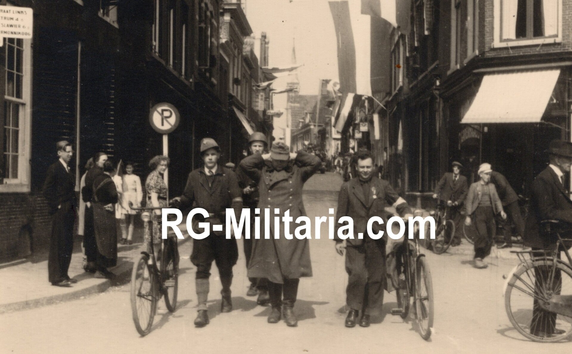 Original WW2 Dutch Liberation Photo - NBS resistance arresting a Wehrmacht member in Dokkum (1945)