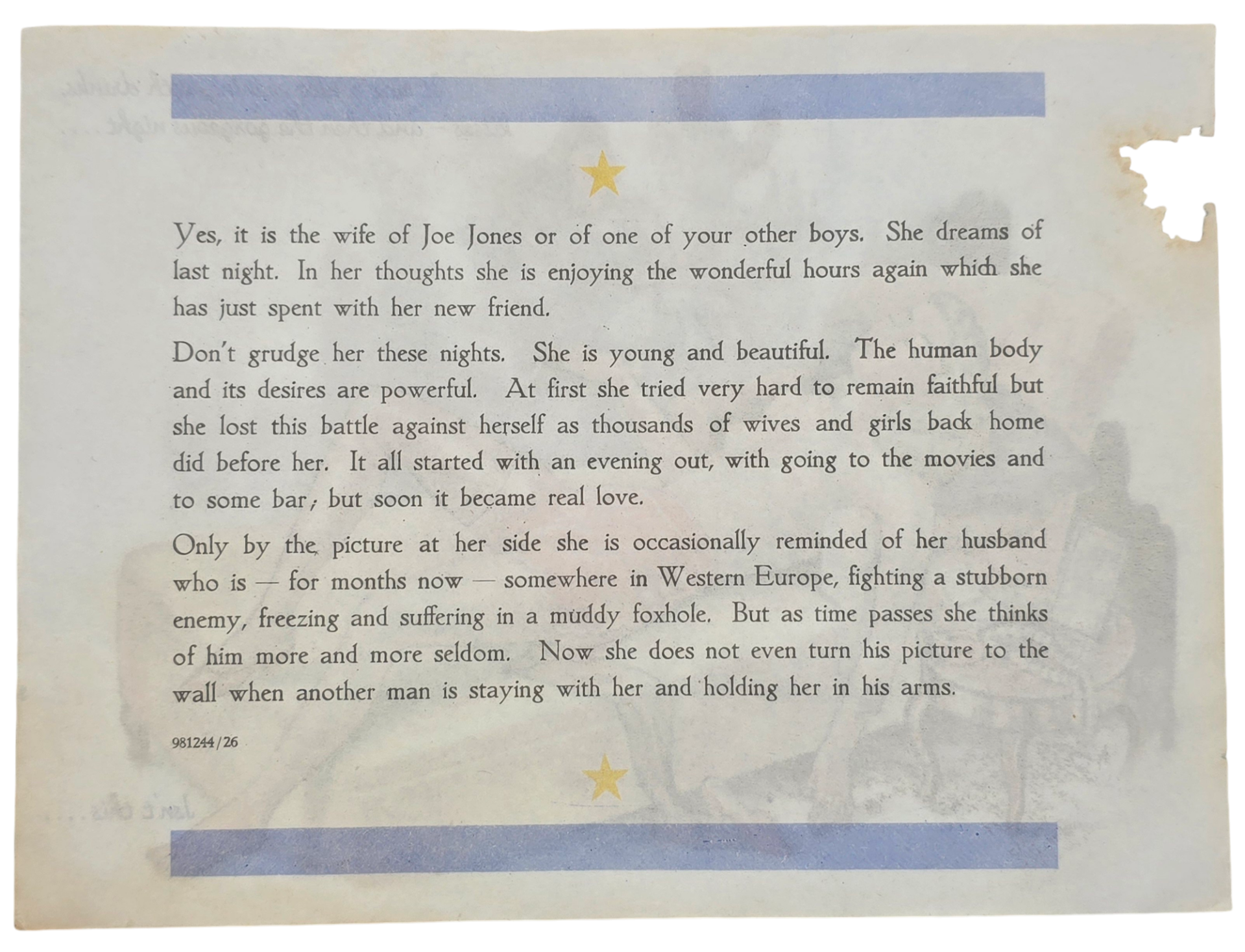 Original WW2 German Leaflet - 981244/26 It was a nice evening with drinks, kisses (1944)
