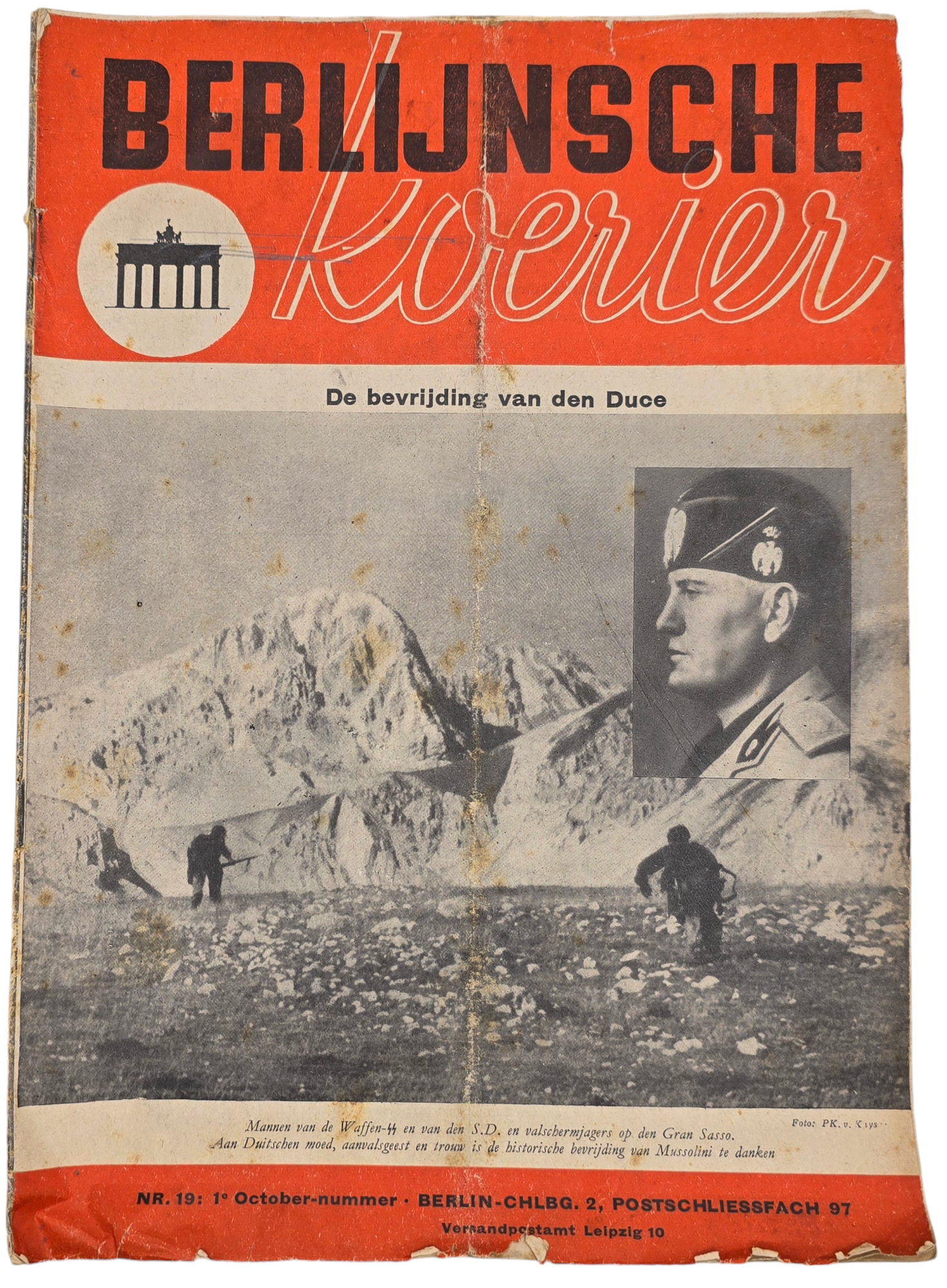 German magazine translated into Dutch for Dutch people who were interested. Damaged. Cover about the liberation of Mussolini.