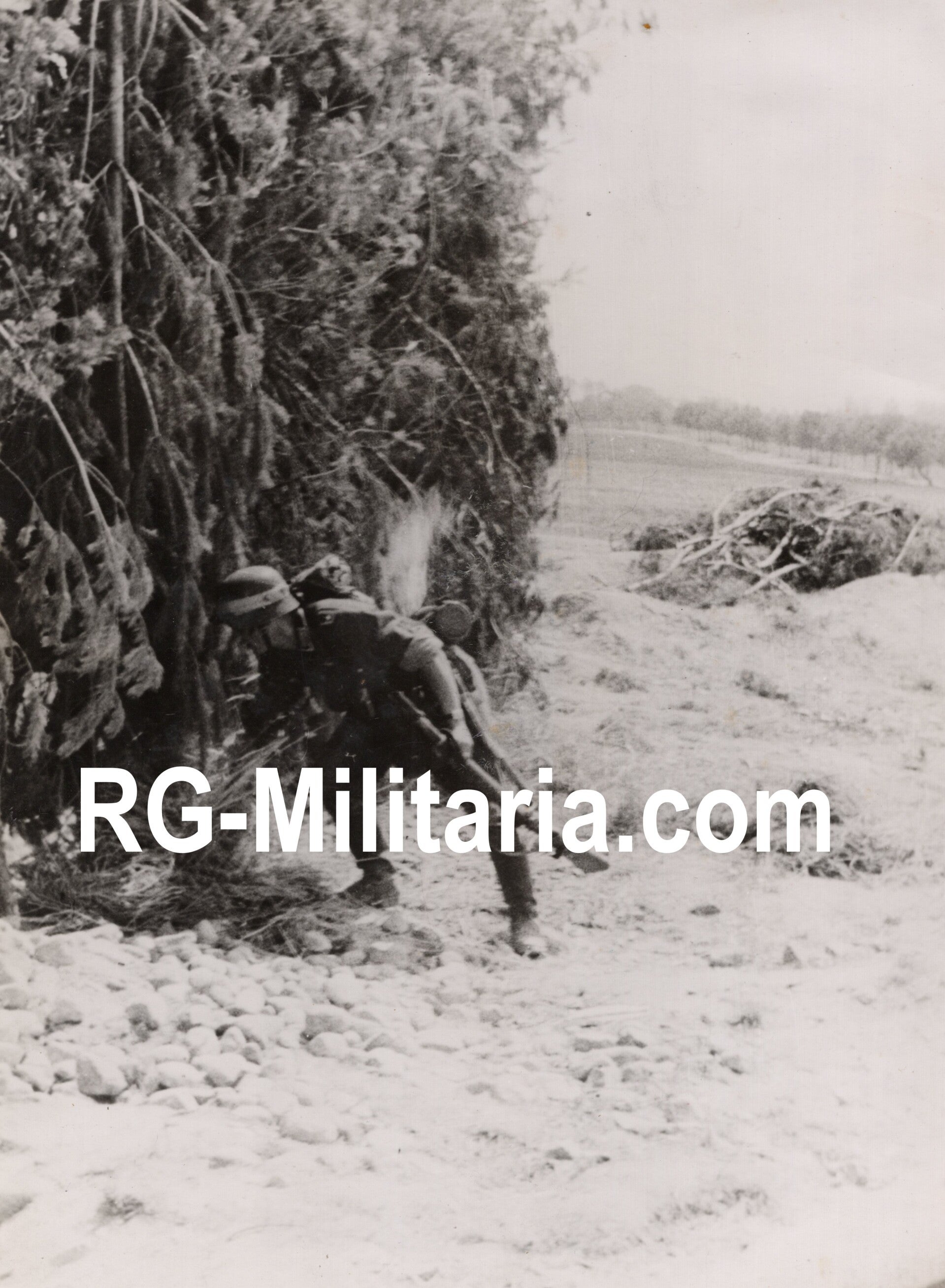 Originele Wo2 Duitse Persfoto - Verbranden van camouflage van Russische bunkers, Oostfront (1943)