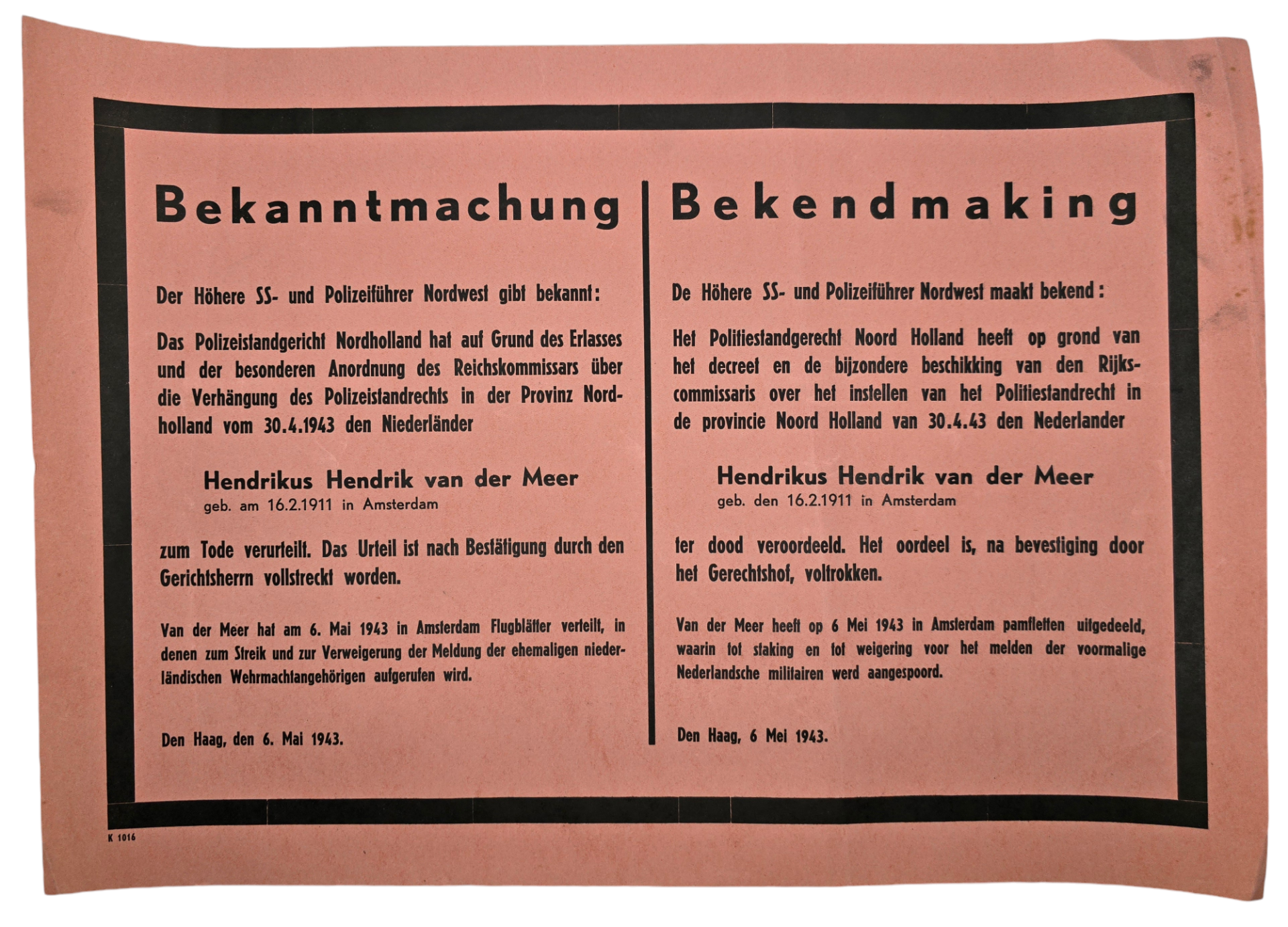 Original WW2 Dutch Waffen SS Poster - SS Execution of Hendrikus Hendrik van der Meer, April-Mei strikes, Amsterdam (1943)