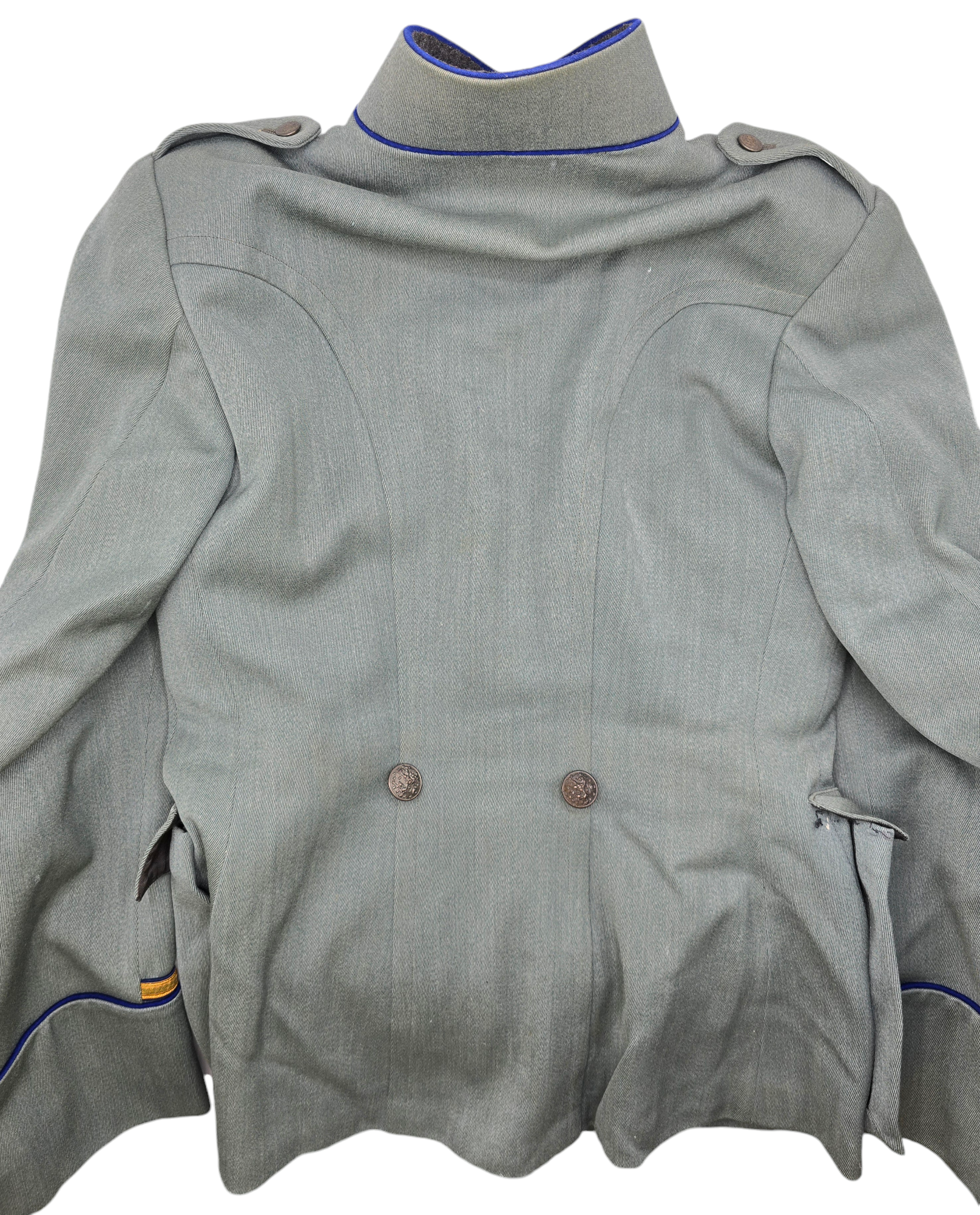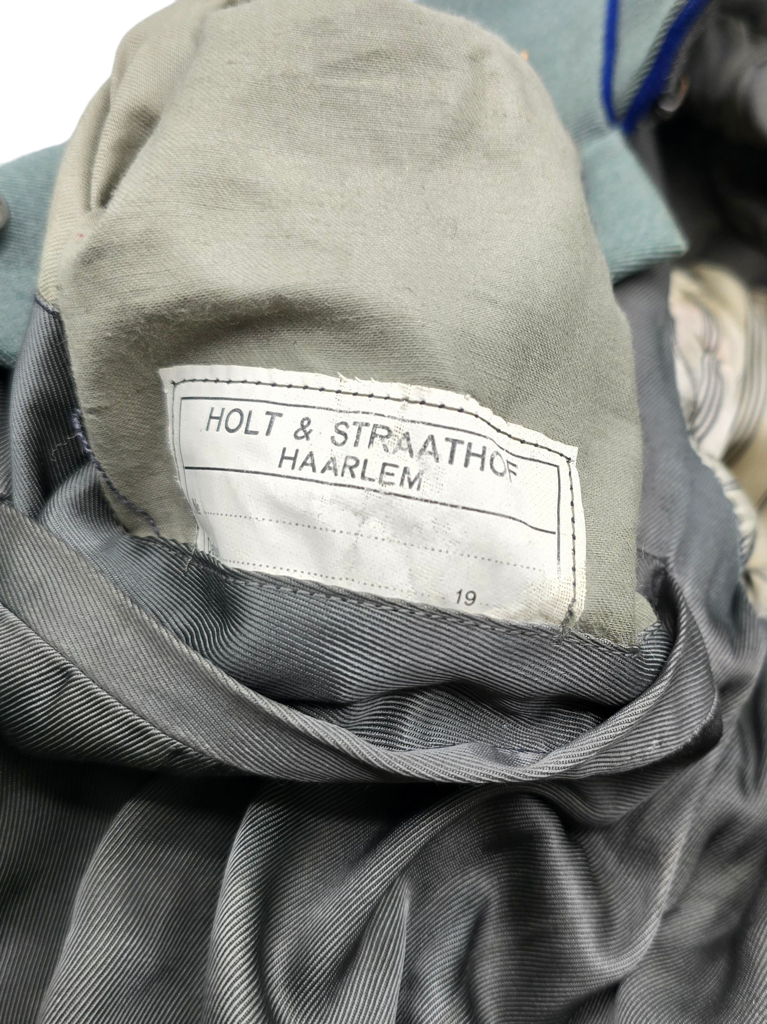 Dit is een Nederlandse uniformset van vóór 1940, gemaakt door Holt & Straathof in Haarlem. De uniformset is niet op naam. De set bestaat uit een jas, broek en een schuitje. De conditie is prima, er zitten enkele mottengaatjes in. De broek mist een knoopje. Zie fotos voor de conditie. De jas en broek zijn matchend, het schuitje heeft een andere kleur.