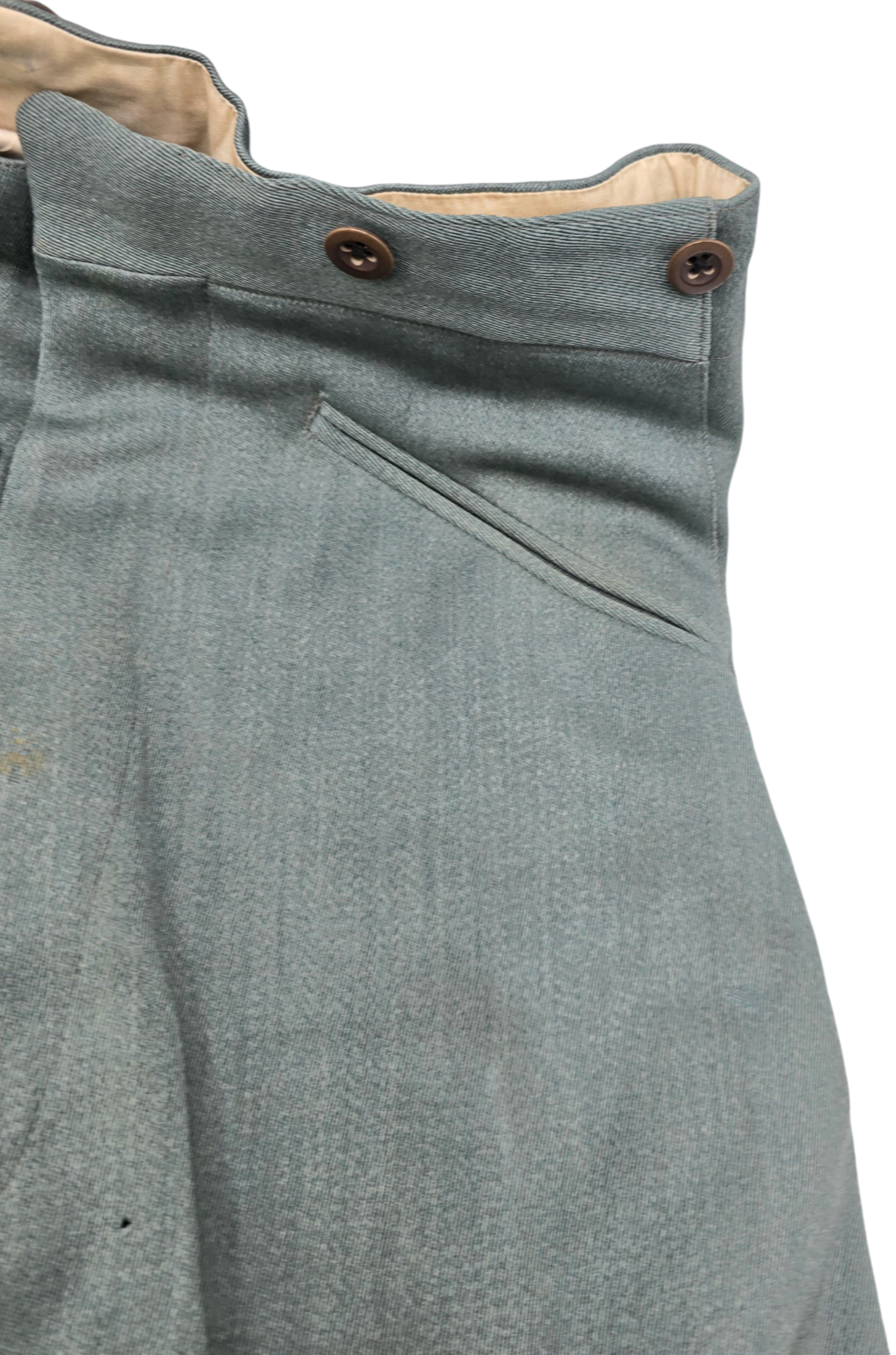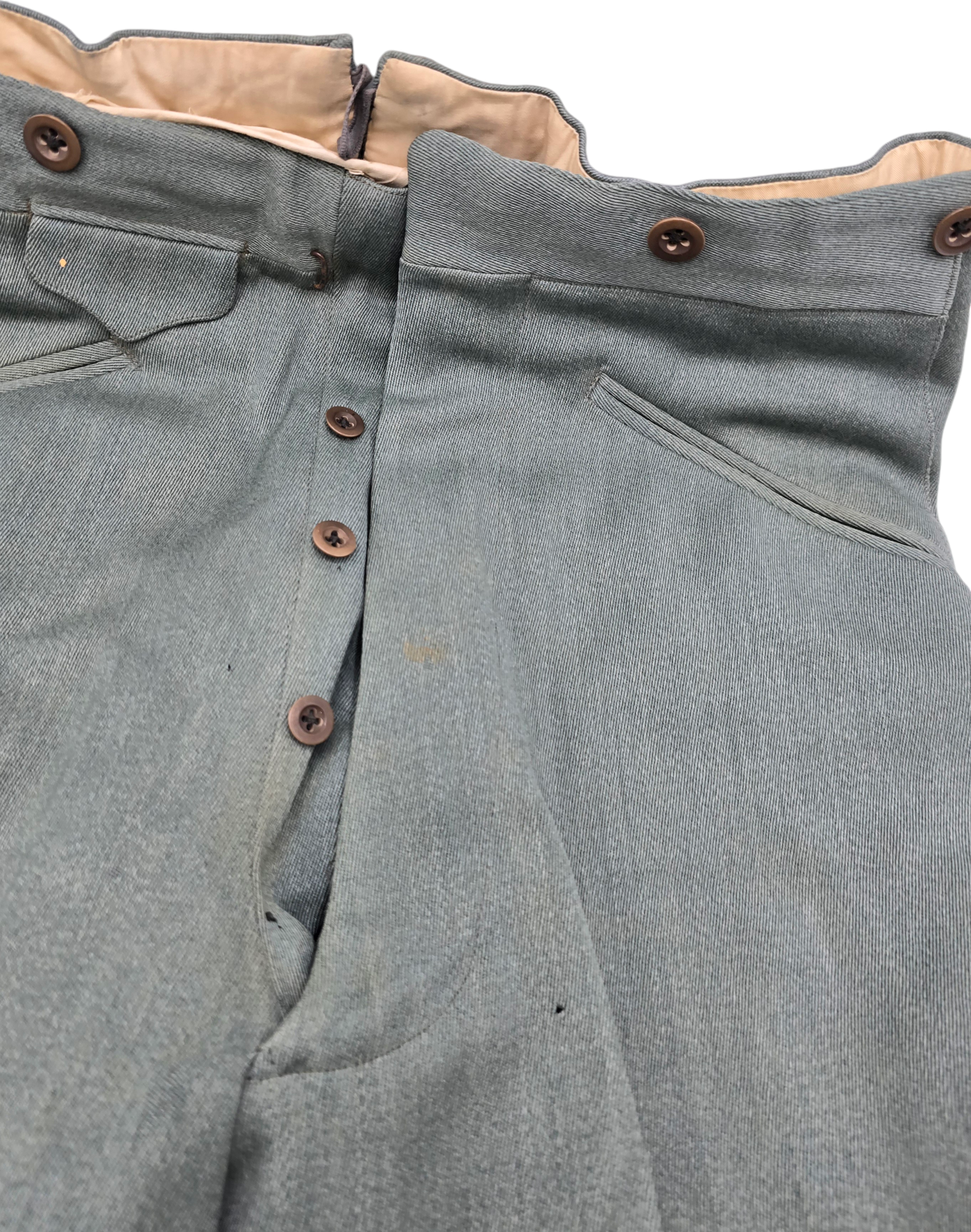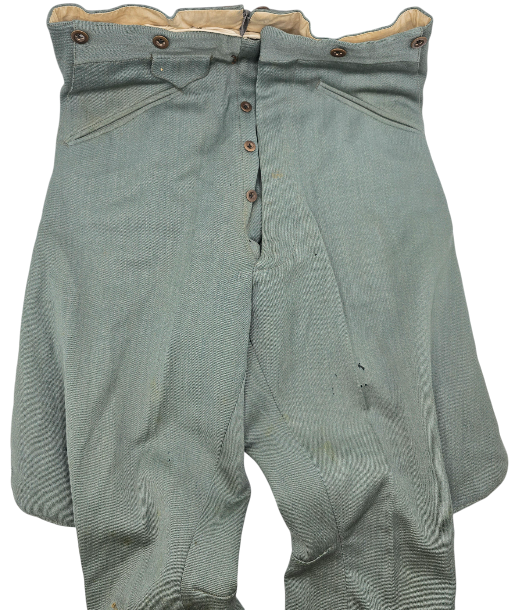 This is a Pre-1940 Dutch uniform set made by Holt & Straathof in Haarlem. The uniform set is unnamed. It comes with a tunic, pantaloons, and an overseas cap. The condition is fine, some moth holes. One button of the pantaloons is missing. See pictures. The tunic and pantaloons match, the overseas cap has another color.