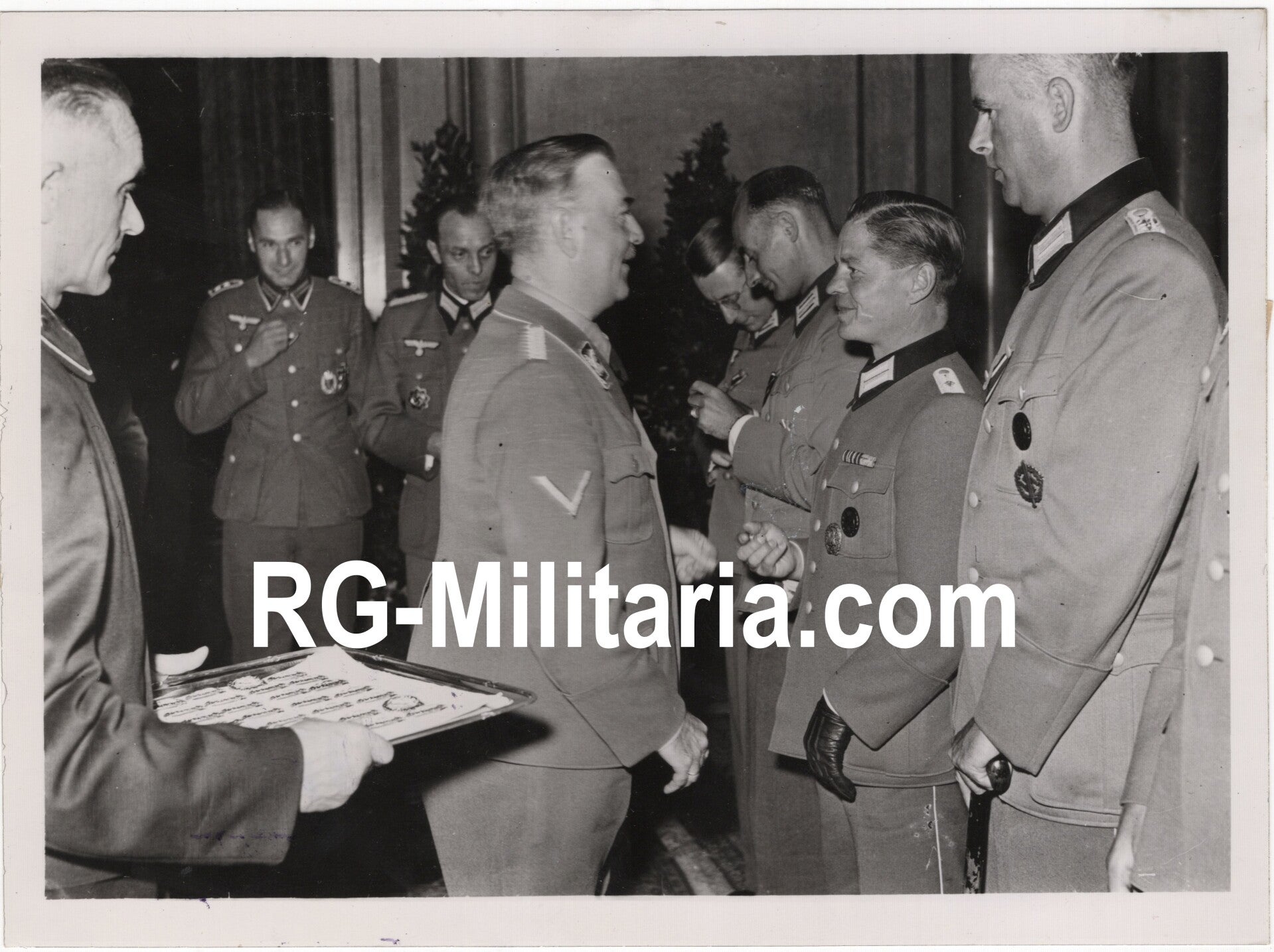 Original WW2 German Press Photo - Berlin mayor SS-Brigadeführer Ludwig Steeg giving VWA Verwundete abzeichens to wounded soldiers (1943)