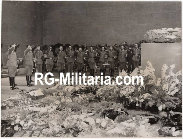 Original WW2 Italian Press Photo - Spanish Blue Division Azul honour the fallen soldiers in Berlin (1943)