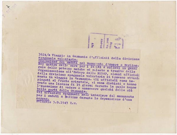 Original WW2 Italian Press Photo - Spaanse divisie Azul militairen eren de gevallen militairen te Berlijn (1943)
