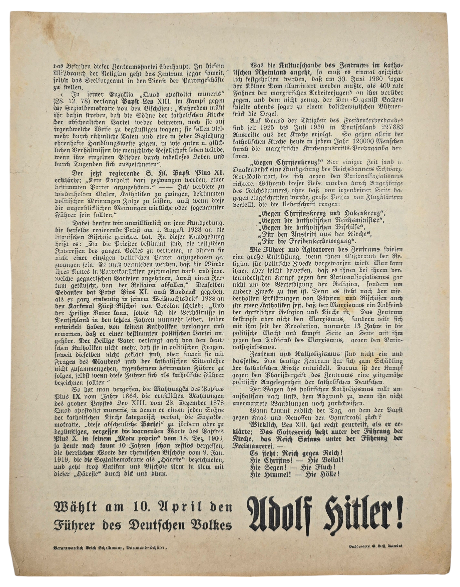 Original WW2 German NSDAP Document - Election flyer ''An die Katholischen Deutschen!'' (1932)