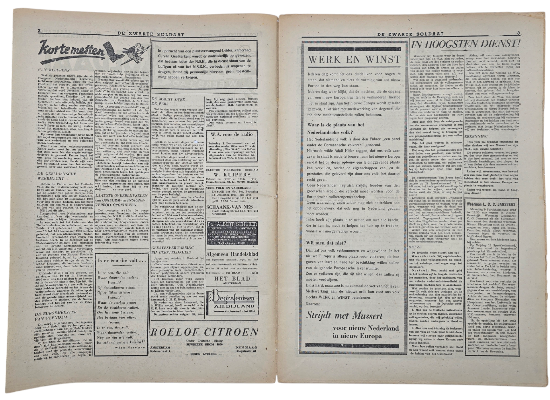 Original WW2 Dutch Collaboration NSB Newspaper - Zwarte Soldaat 2nd Year No. 25 (1942)