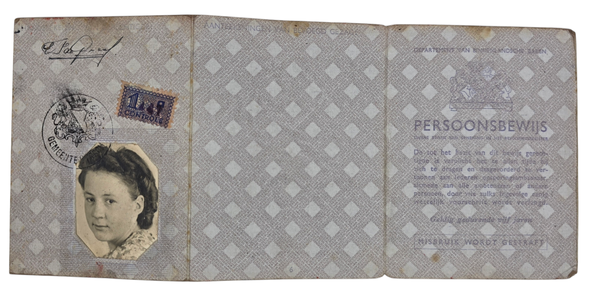 Original WW2 Dutch ID Card - Persoonsbewijs Westbroek, Utrecht, Maartensdijk (1941)