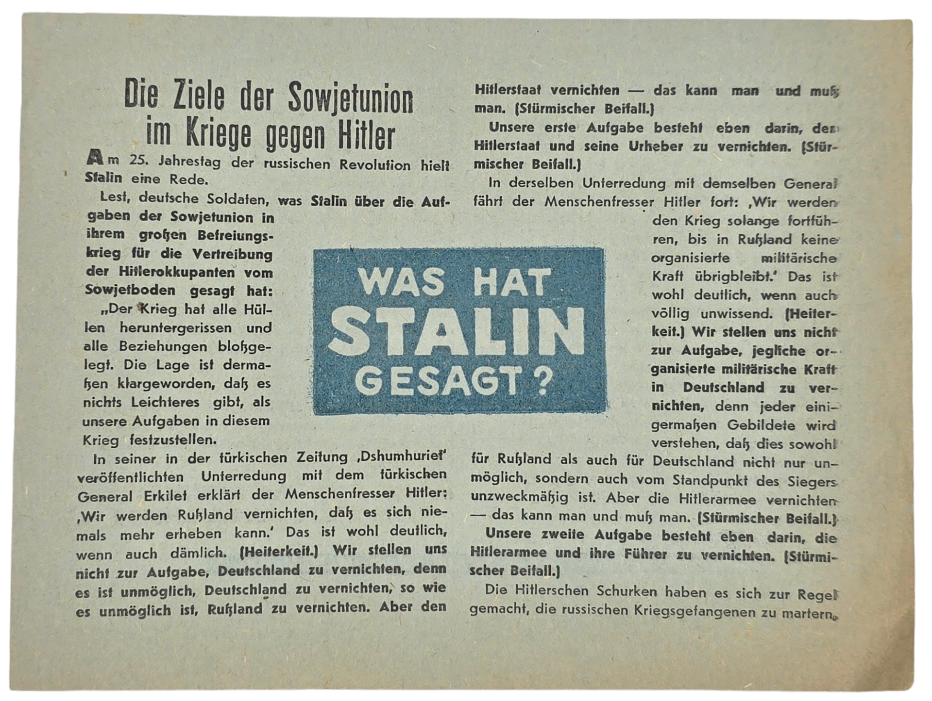 Original WW2 Russian Leaflet - 2082 "Was hat Stalin gesagt?'' (1942)