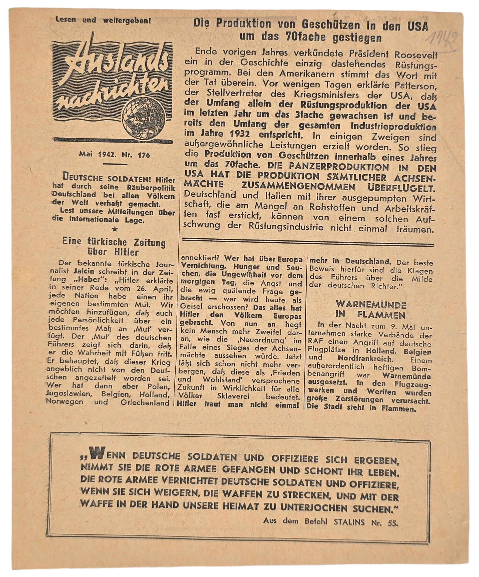 Original WW2 Russian Leaflet - 1386 "Auslands nachrichten Nr. 176" (1942)