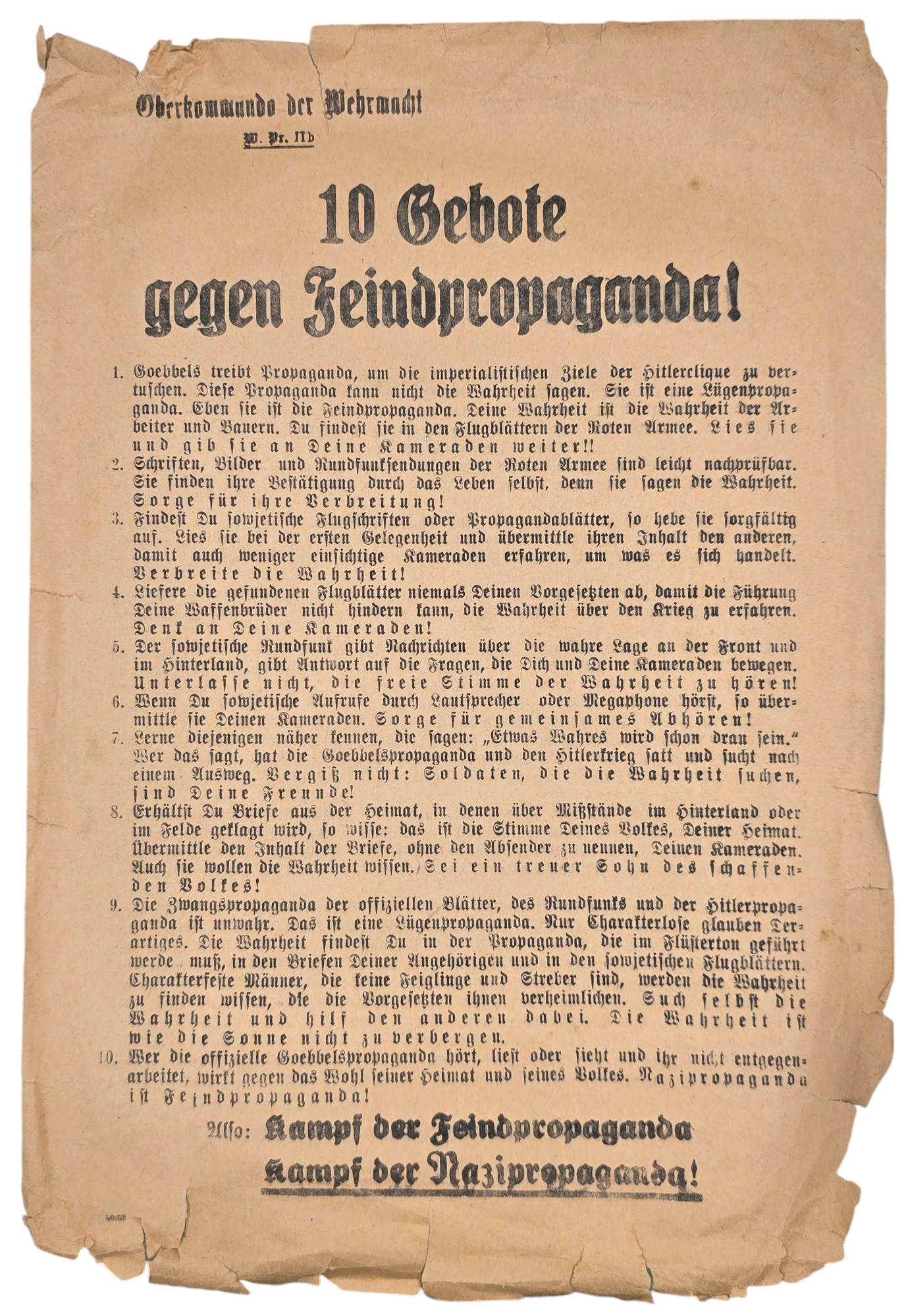 Original WW2 Russian Leaflet - 1069 "10 Gebote gegen Feindpropaganda!" (1942)