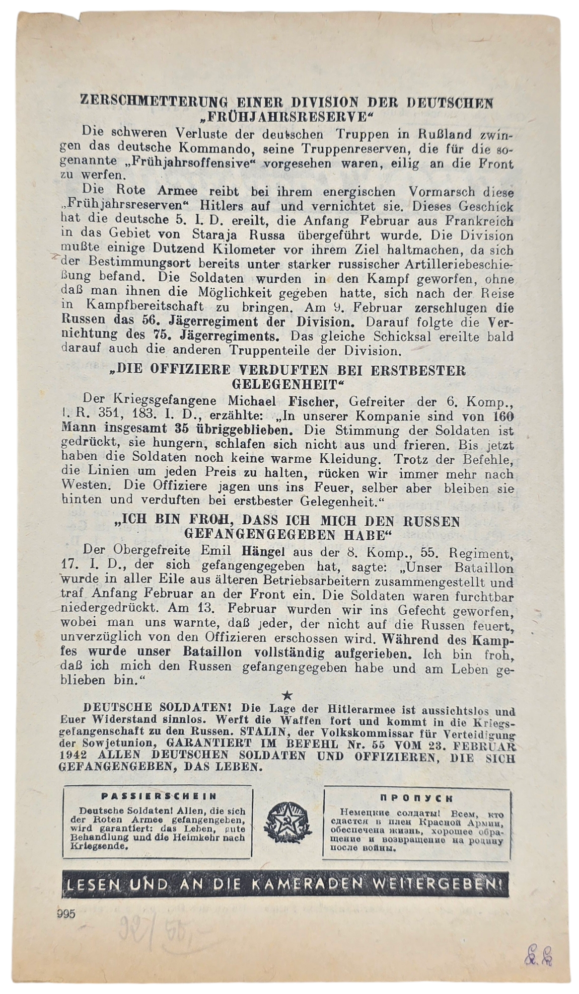 Original WW2 Russian Leaflet - 995 "Front Nachrichten Nr. 119" (1942)