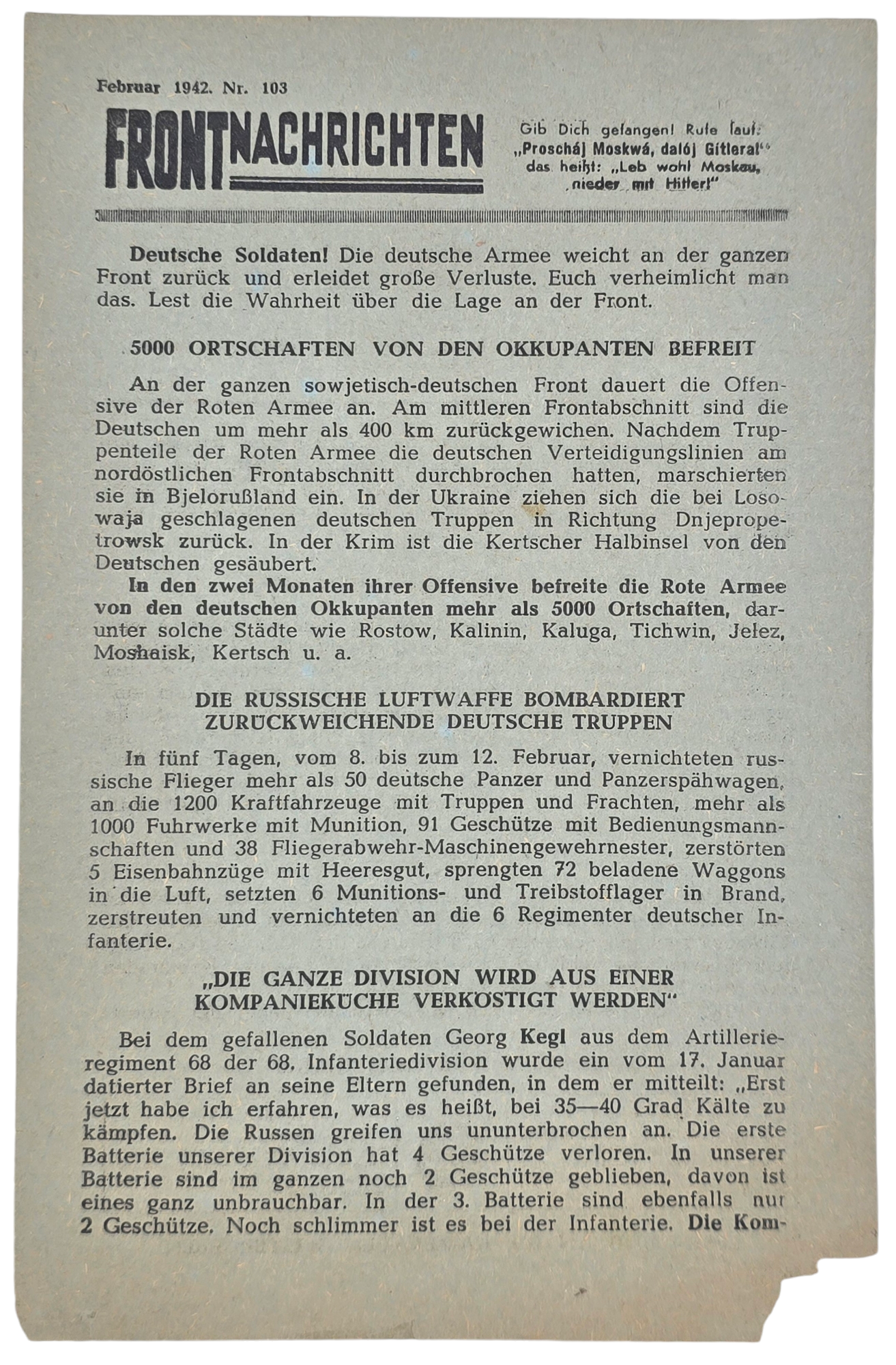Original WW2 Russian Leaflet - 865 "Front Nachrichten Nr. 103'' (1942)