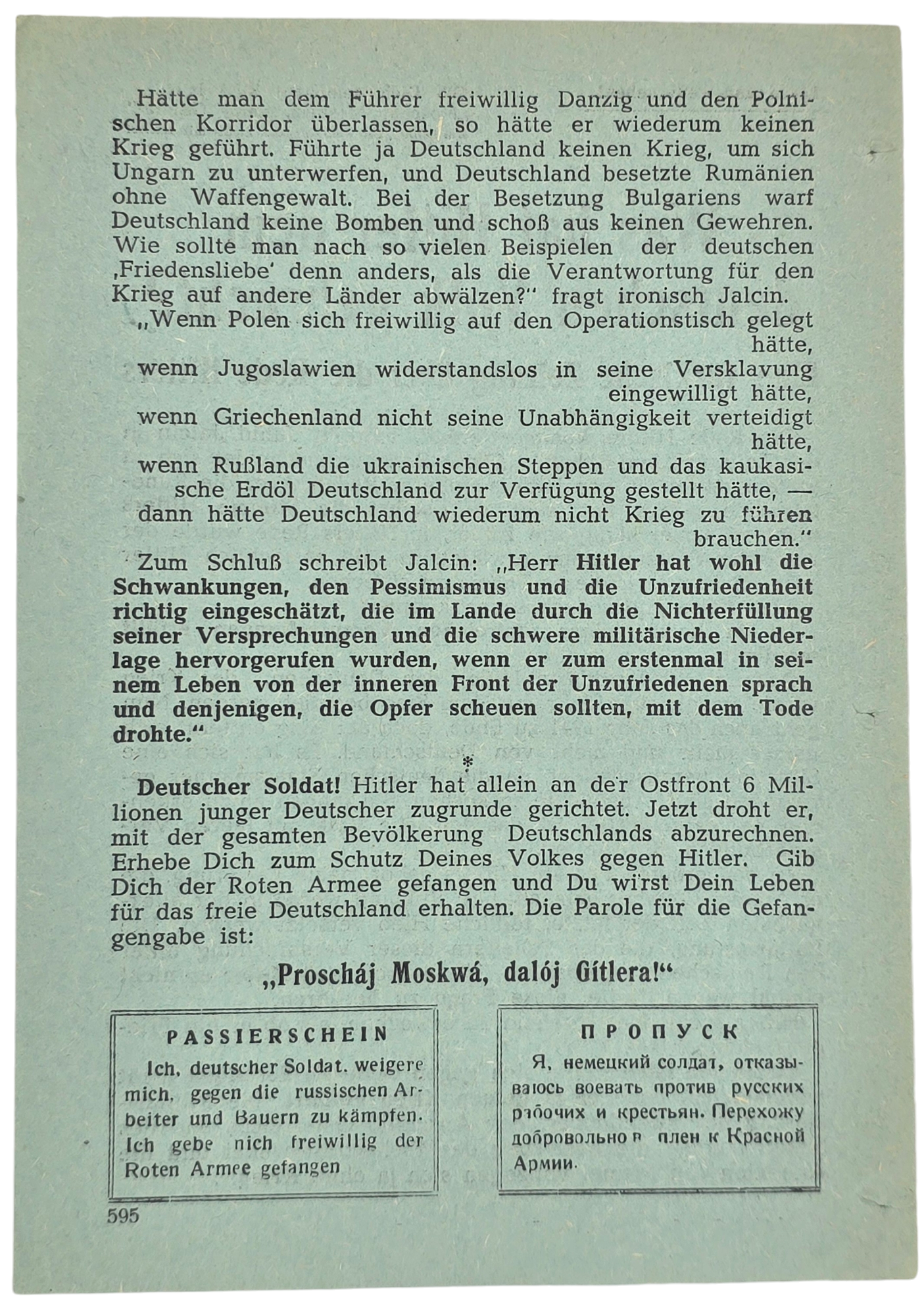Original WW2 Russian Leaflet - 595 "Was hat Hitler dem Deutschen Volk gebracht?'' (1941)