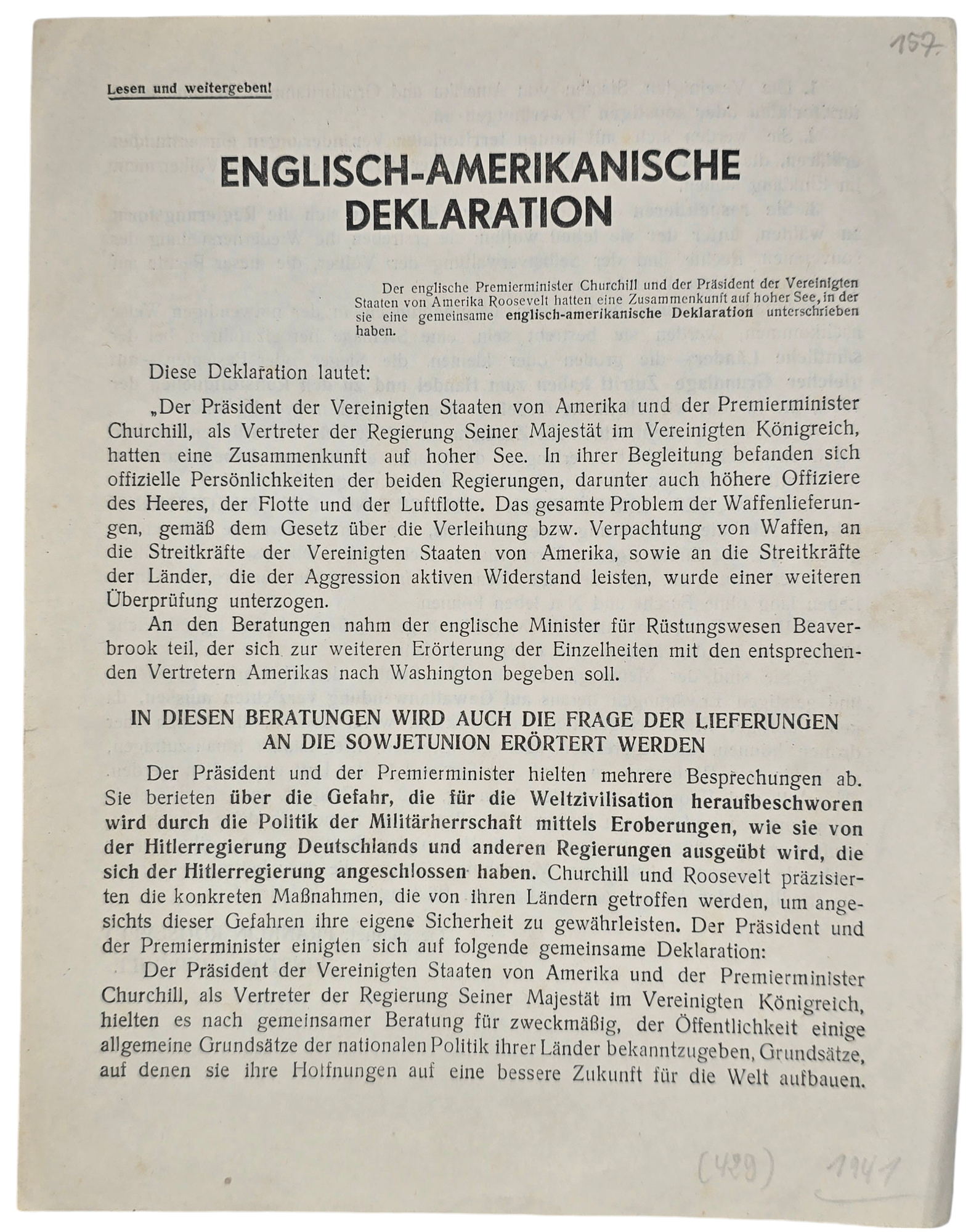 Original WW2 Russian Leaflet - 429 "Englisch-Amerikanische Deklaration'' (1941)