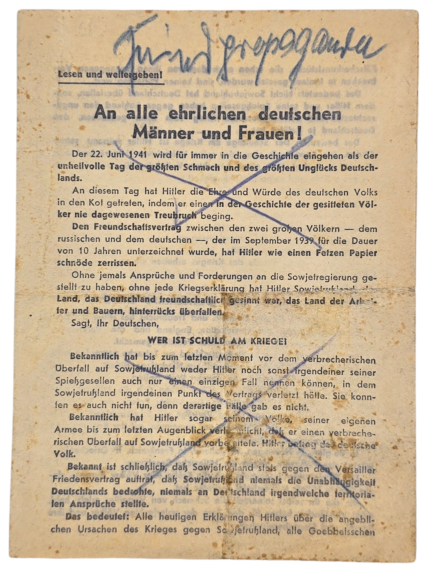 Original WW2 Russian Leaflet - 156 "An alle ehrlichen Deutschen Männer und Frauen!'' (1941)
