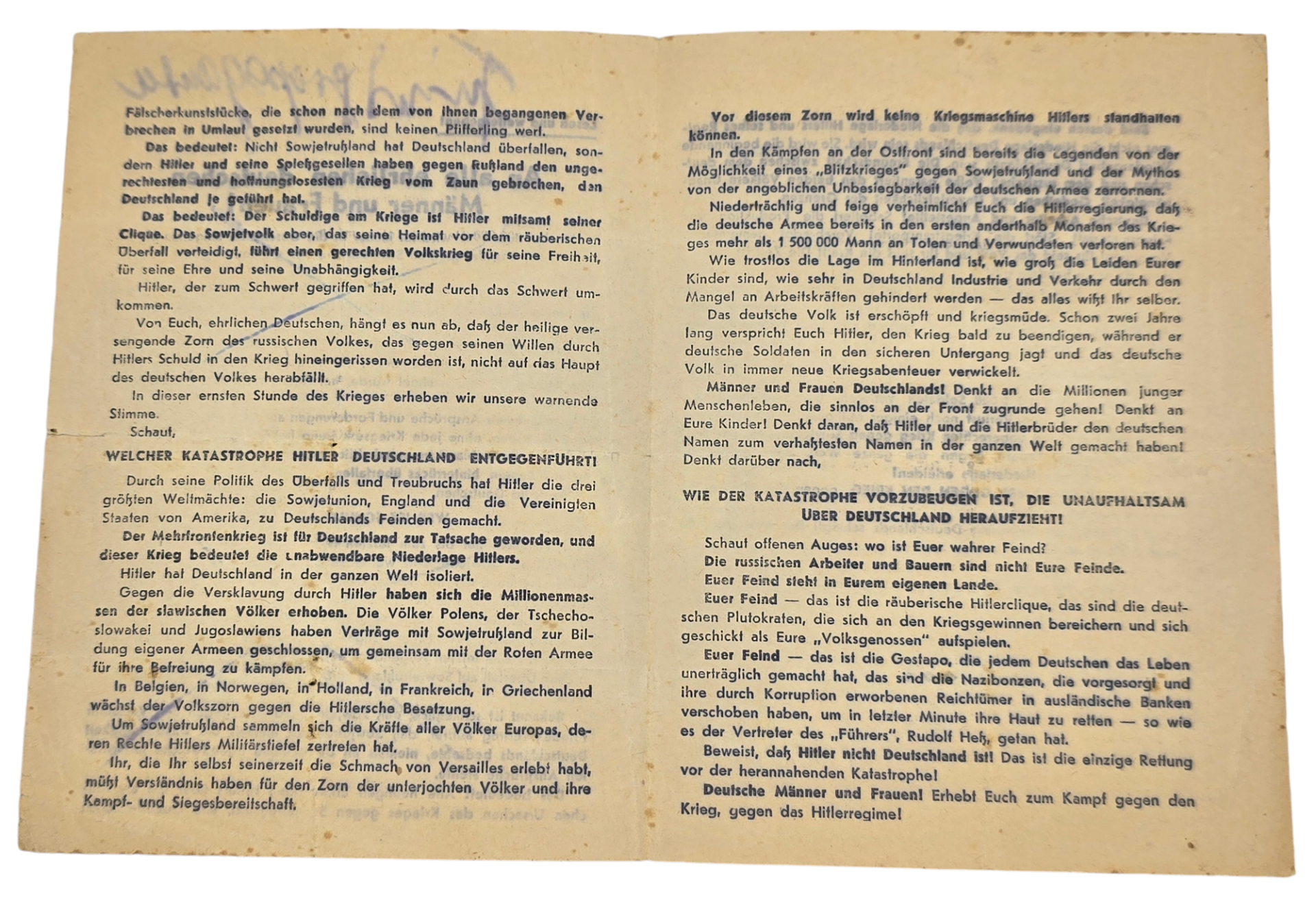 Origineel Wo2 Russisch Pamflet - 156 "An alle ehrlichen Deutschen Männer und Frauen!'' (1941)