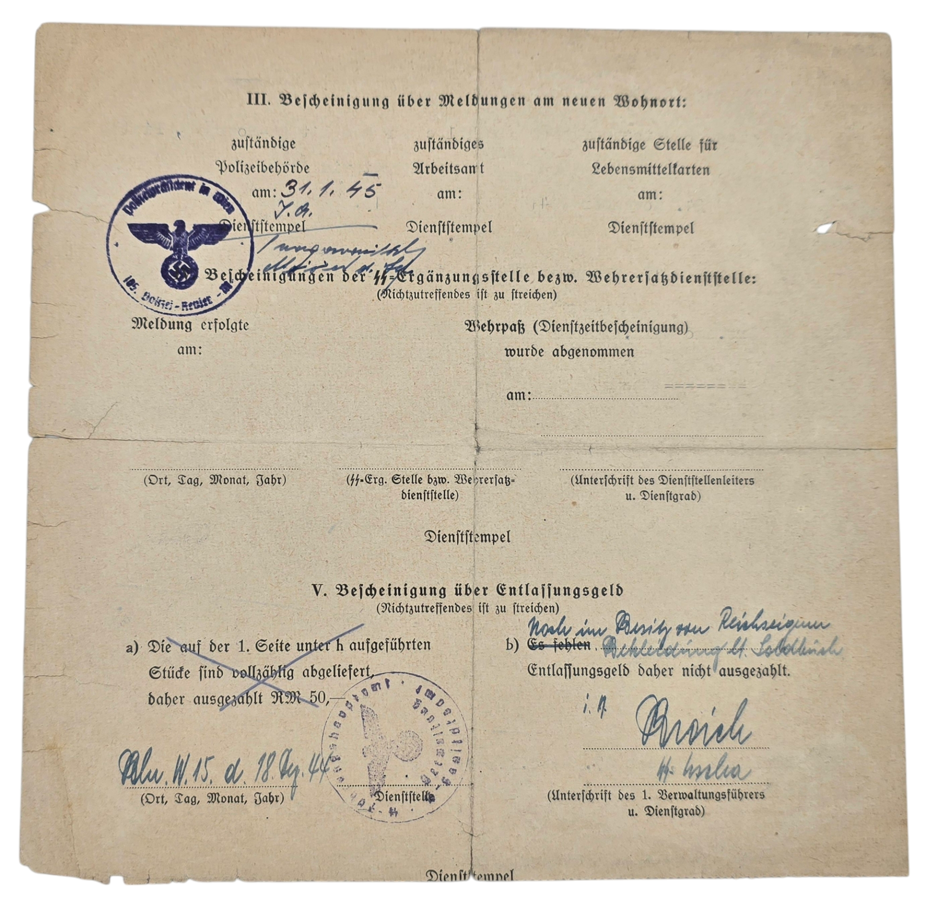 Origineel Wo2 Nederlands Waffen SS Document - Entlassungsschein Nederlandse Vrijwilliger Leg.-Hauptsturmführer Schleurholz-Boerma (1944)