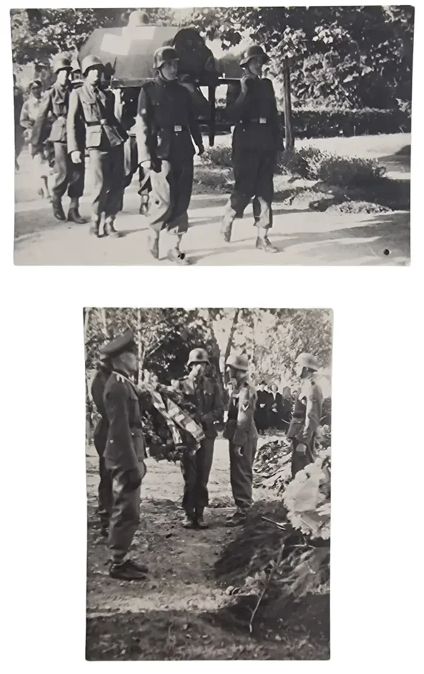 Jacob Zwemmer overleed aan ziekte. Zwemmer is 6 maanden lang verzorgd in het Kriegs-Lazaret Jonkerbosch in Nijmegen. Toen is hij twee maanden lang verzorgd bij hem thuis in Zandvoort tot zijn overlijden. Bijgevoegd twee reproductie fotos van zijn begrafenis.