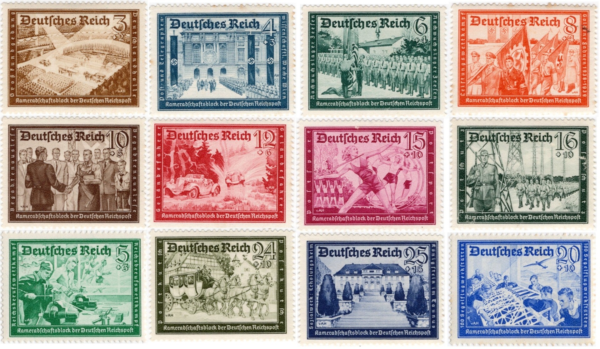 Original WW2 German Document - Stamp set Deutsches Reich Kameradschaftsblock der Deutschen Reichspost