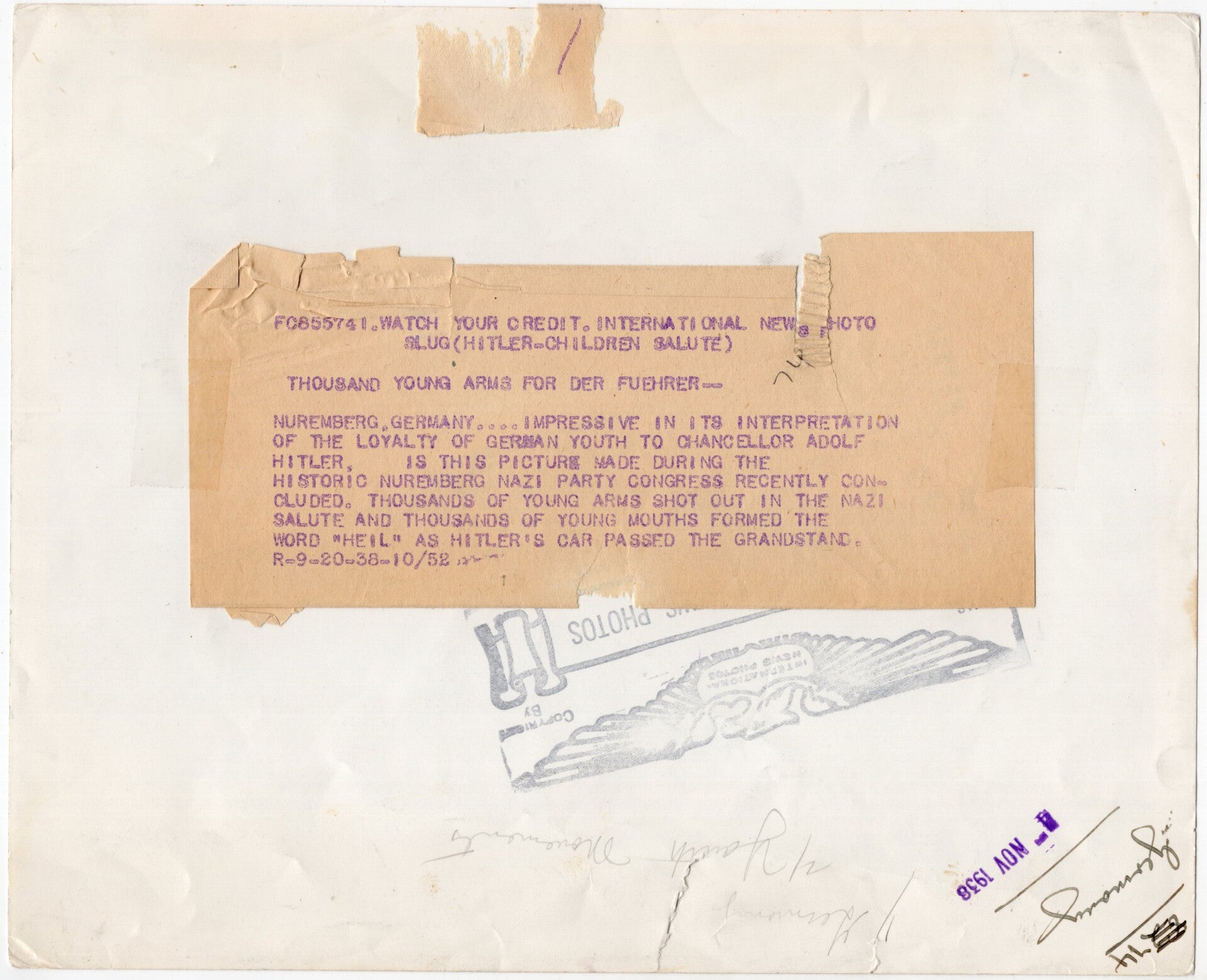 Original WW2 US Press Photo - Adolf Hitler inspecting the HJ Hitlerjugend children in Nurnberg (1938)