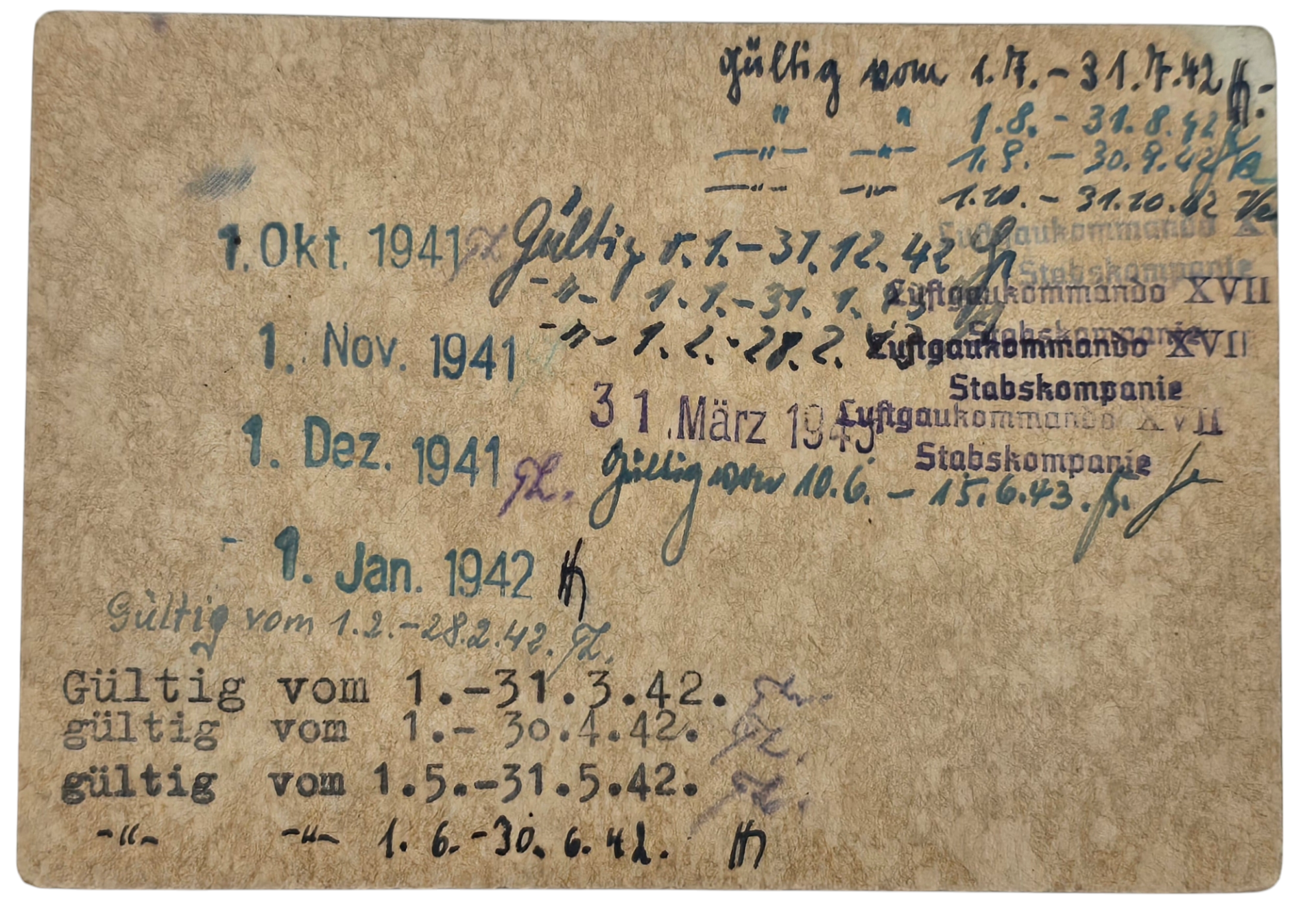Original WW2 German Document - Urlaubskarte Luftgaukommando XVII Wien, Vienna (1941 1942)