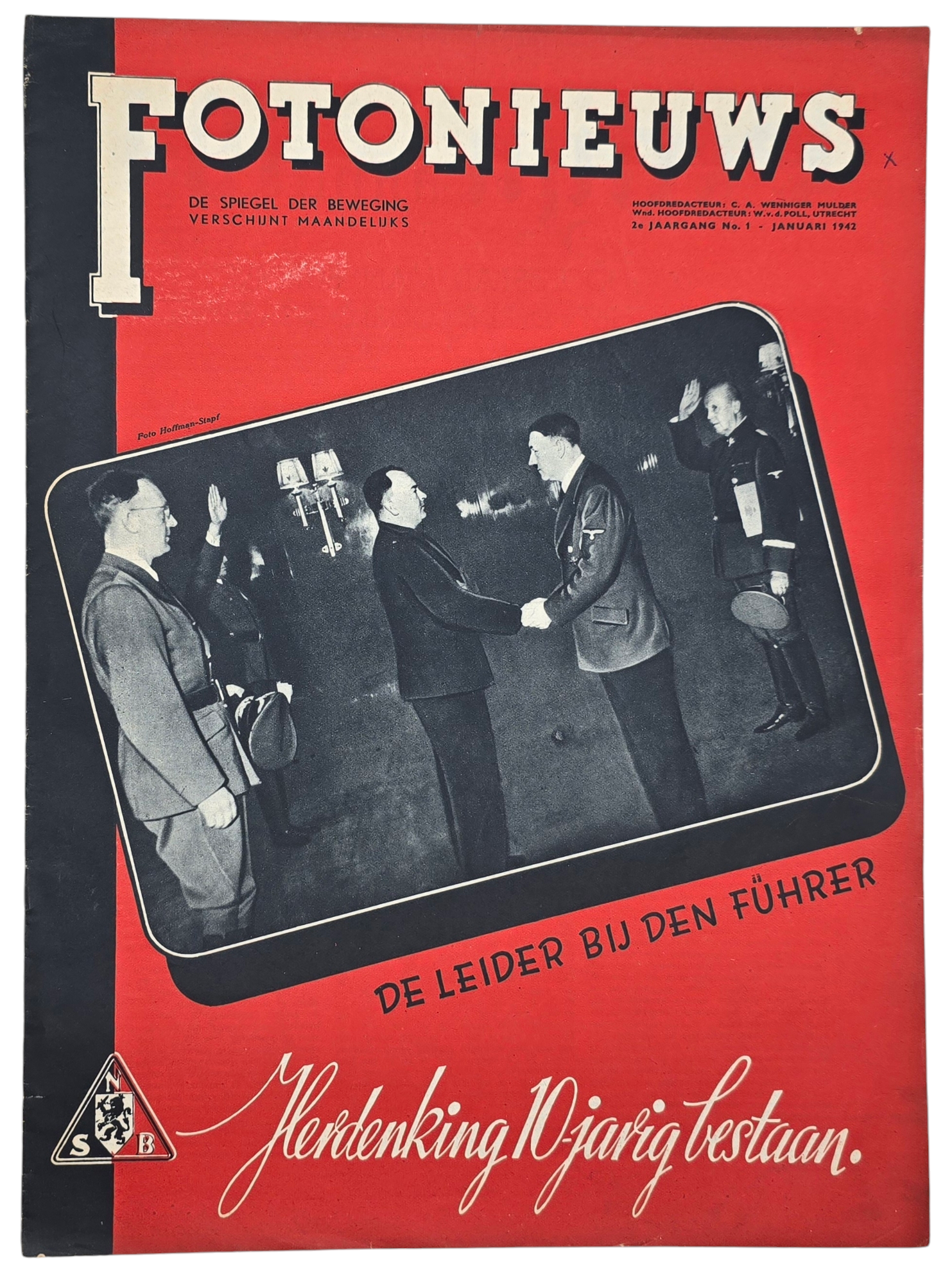 Original WW2 Dutch Collaboration NSB Magazine - Fotonieuws, 2de year No. 1 ''De Leider bij den Führer'' (1942)