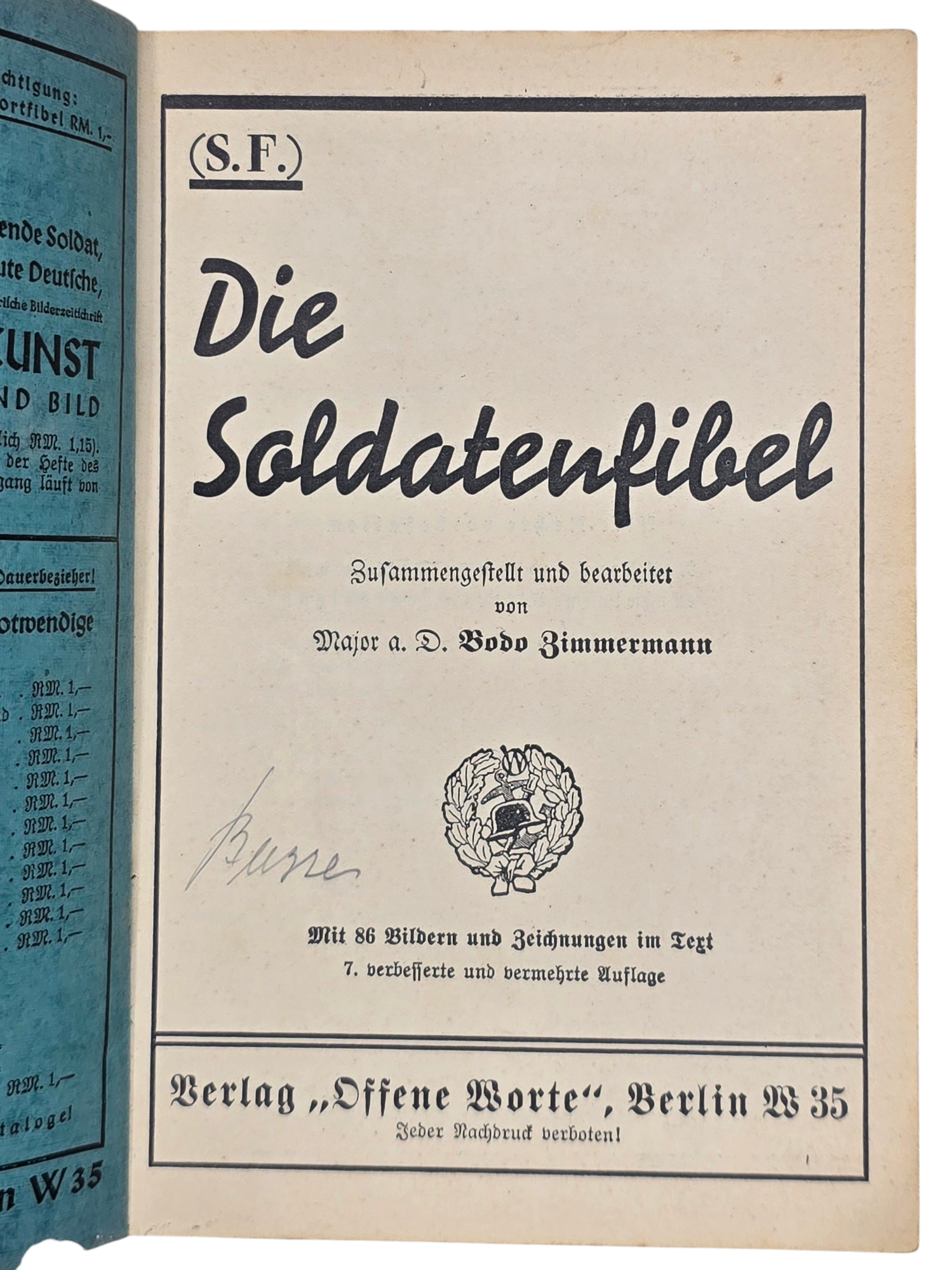 Original WW2 German Book - Die Soldatenfibel, D. Bodo Zimmermann