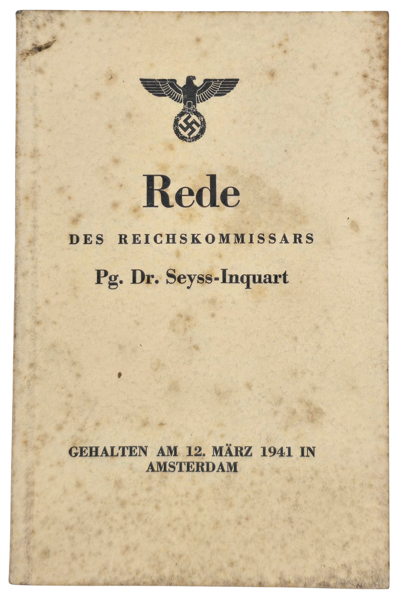 Original WW2 Dutch Collaboration Brochure - Rede des Reichskommissars Pg. Dr. Seyss-Inquart, Amsterdam (1941)