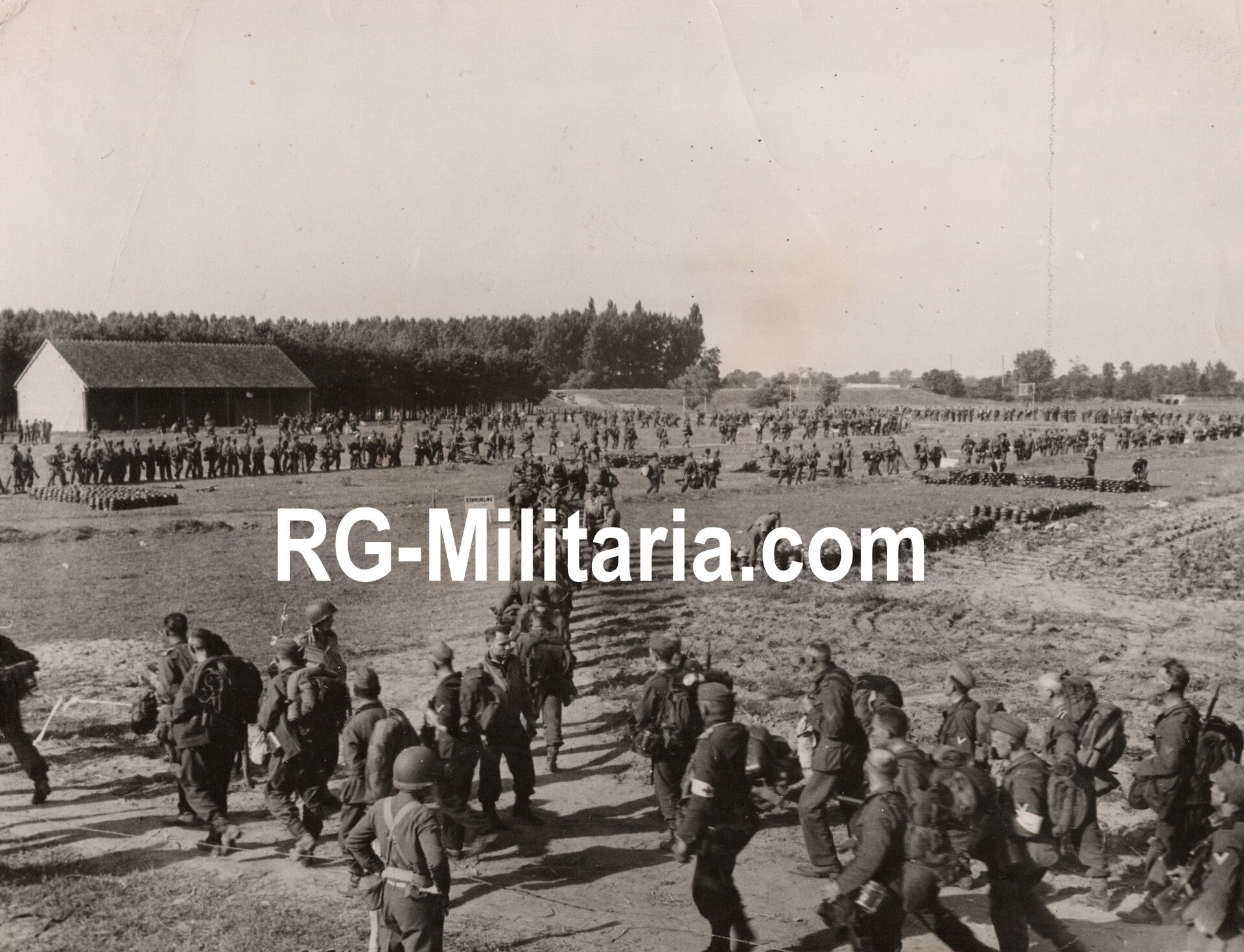 Originele Wo2 Amerikaanse Persfoto - Amerikaanse soldaten met Duitse POWs in Orléans, Frankrijk (1944)