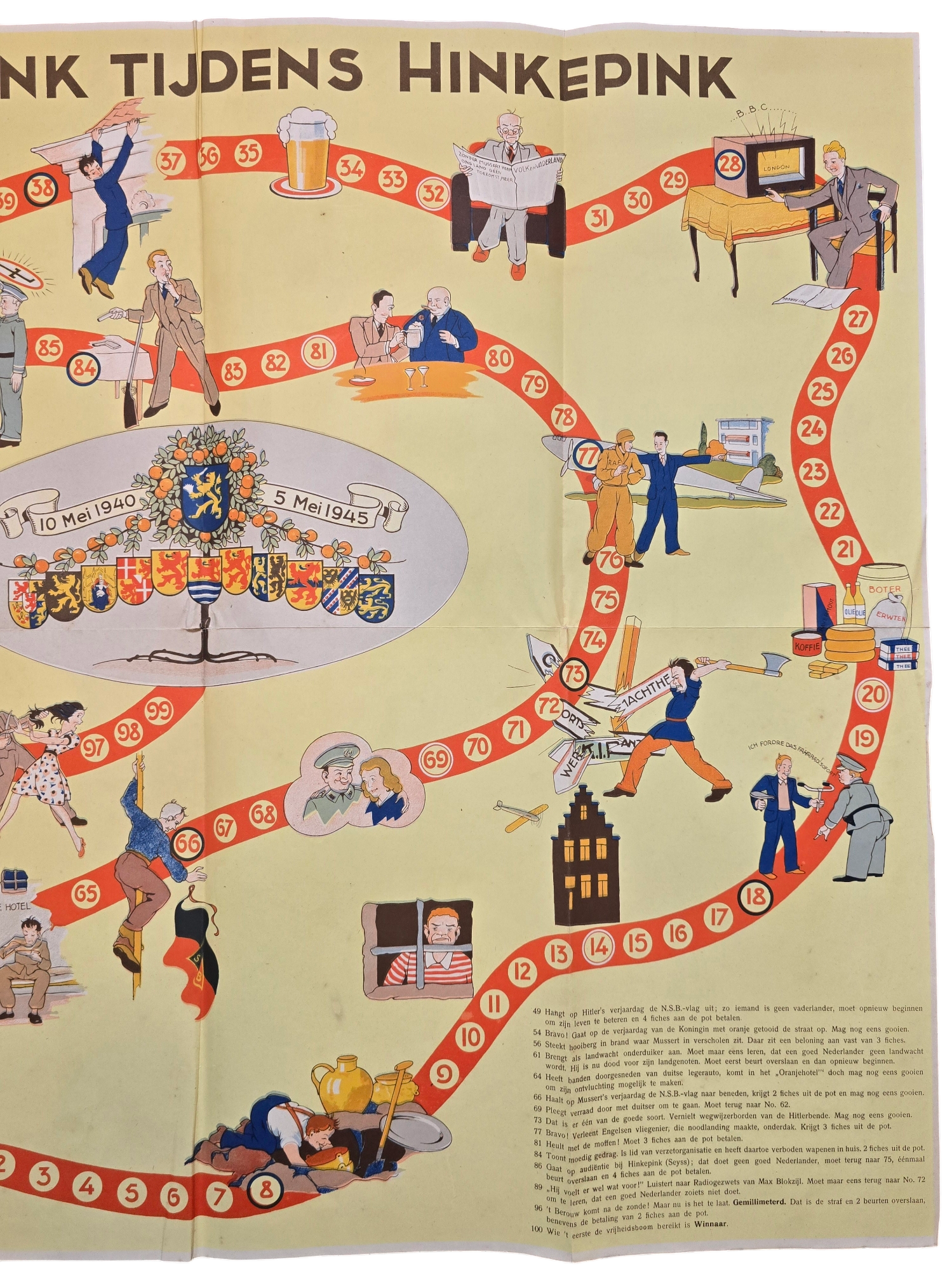 Origineel Wo2 Nederlands Bevrijding Docucment - Bordspel Laf en Flink tijdens Hinkepink, Den Haag (1945)