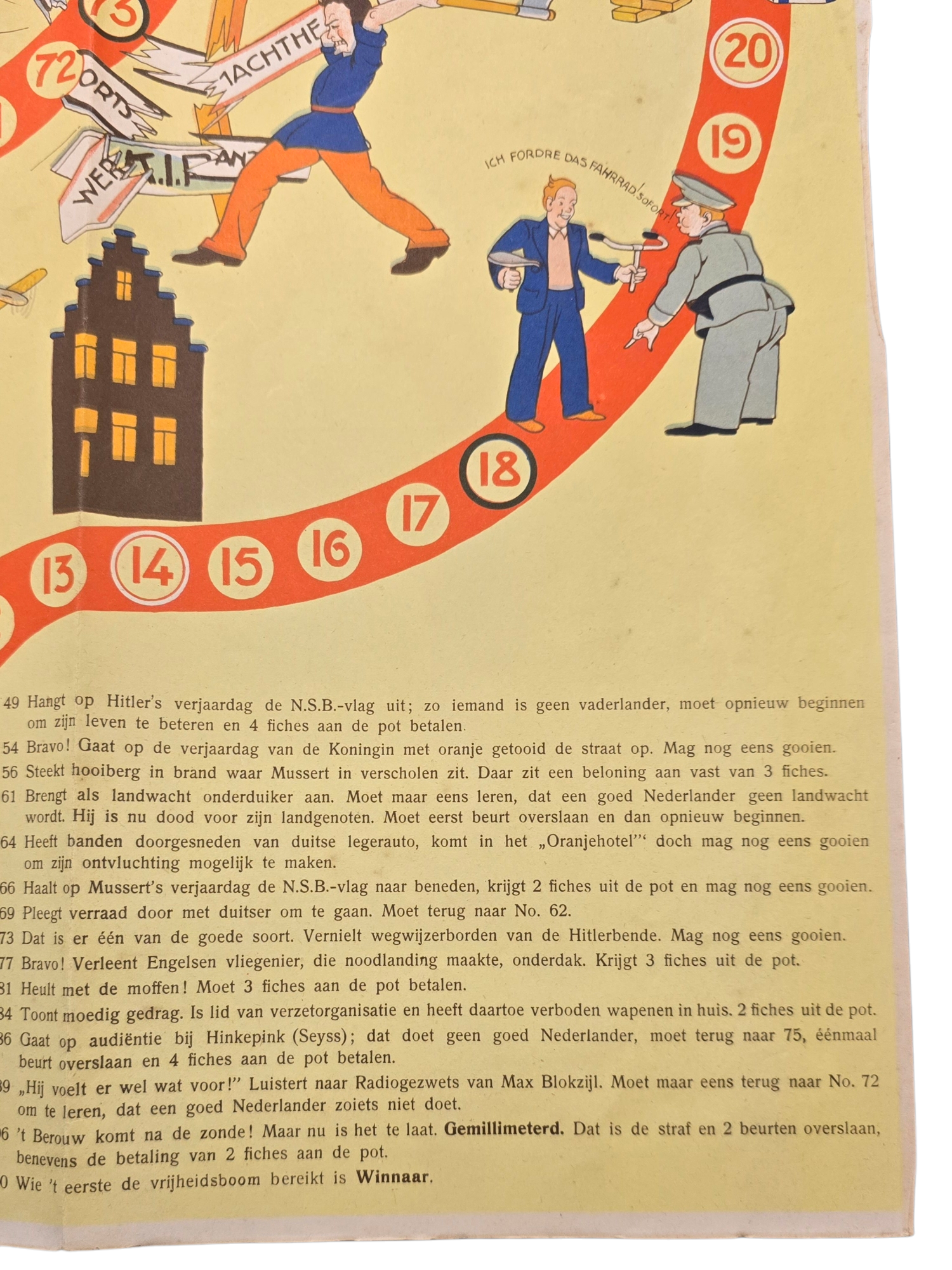 Bordspel met veel satirische karikaturen over de Nederlandse bezettingstijd.