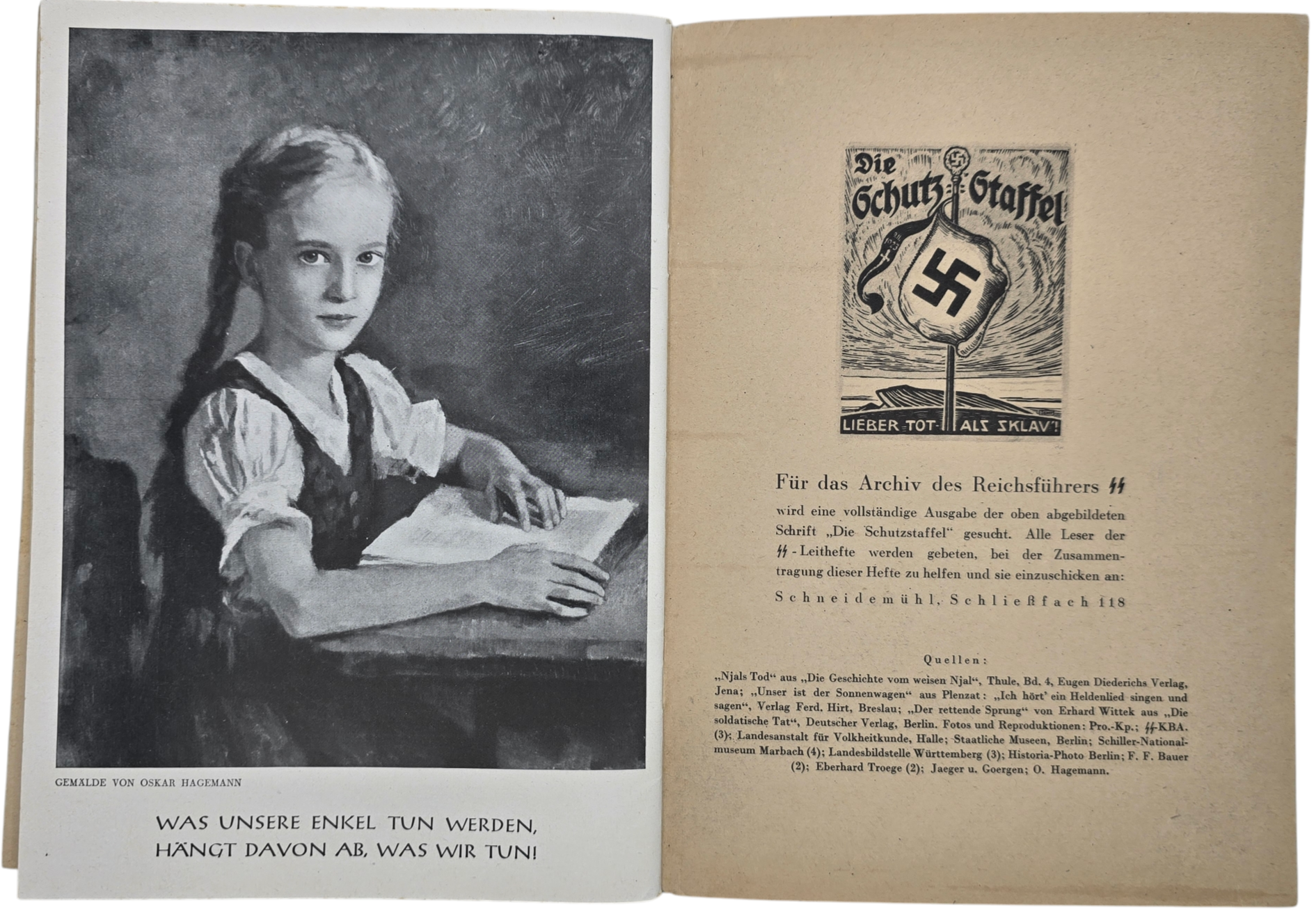 SS-brochure met veel artikelen die laten zien hoe de SS dacht. Binnenin is een artikel te lezen over de SS divisie Prins Eugen. Inclusief de bijlage ''Kamerad, die Schicksalstunde Schlägt, Marschlied der Waffen SS''. Over Kurt Eggers die tijdens strijd aan het oostfront sneuvelde.