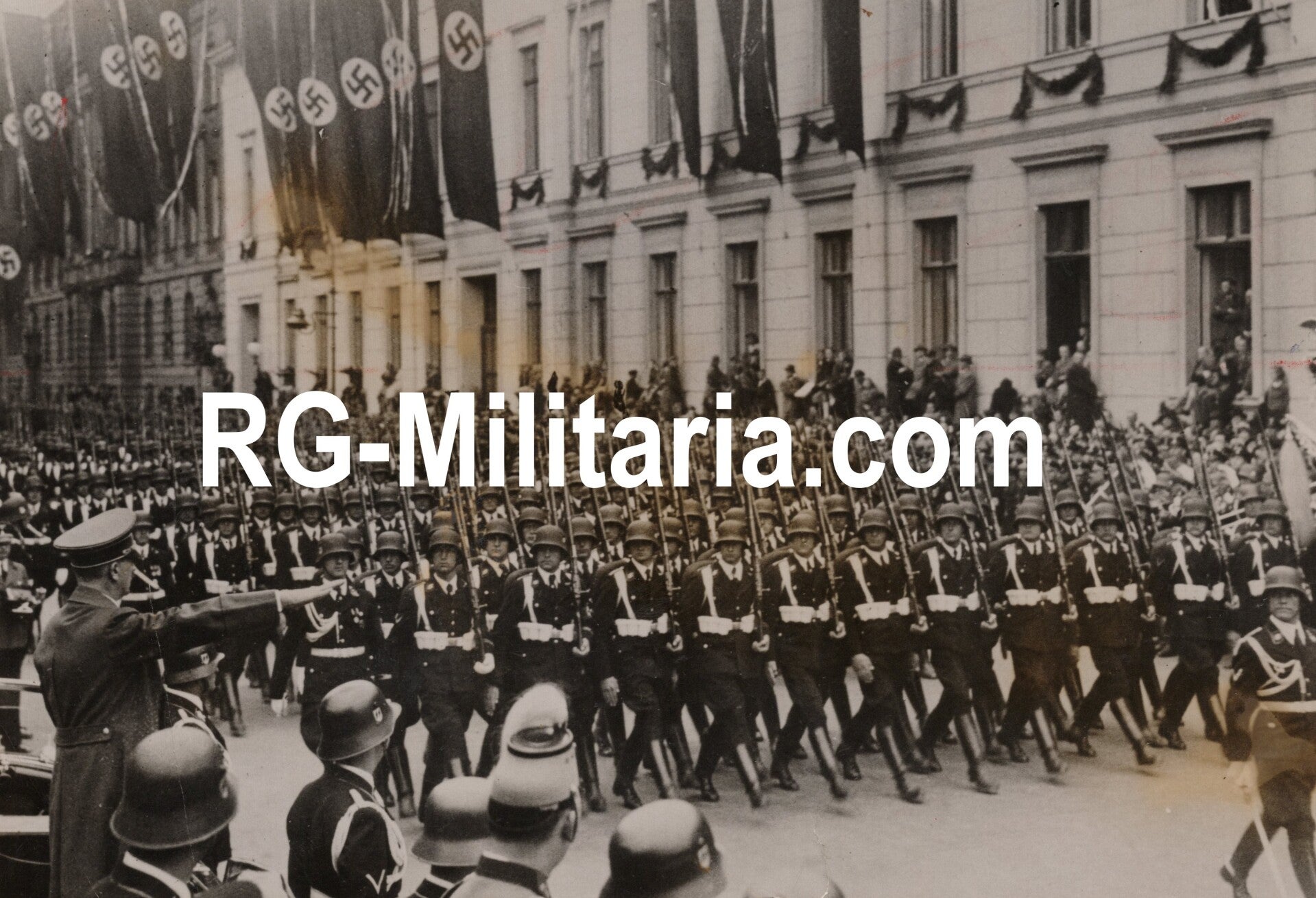 Original WW2 US Press Photo - Hitler salutes the Allgemeine SS during his 50th birthday, Berlin (1939)