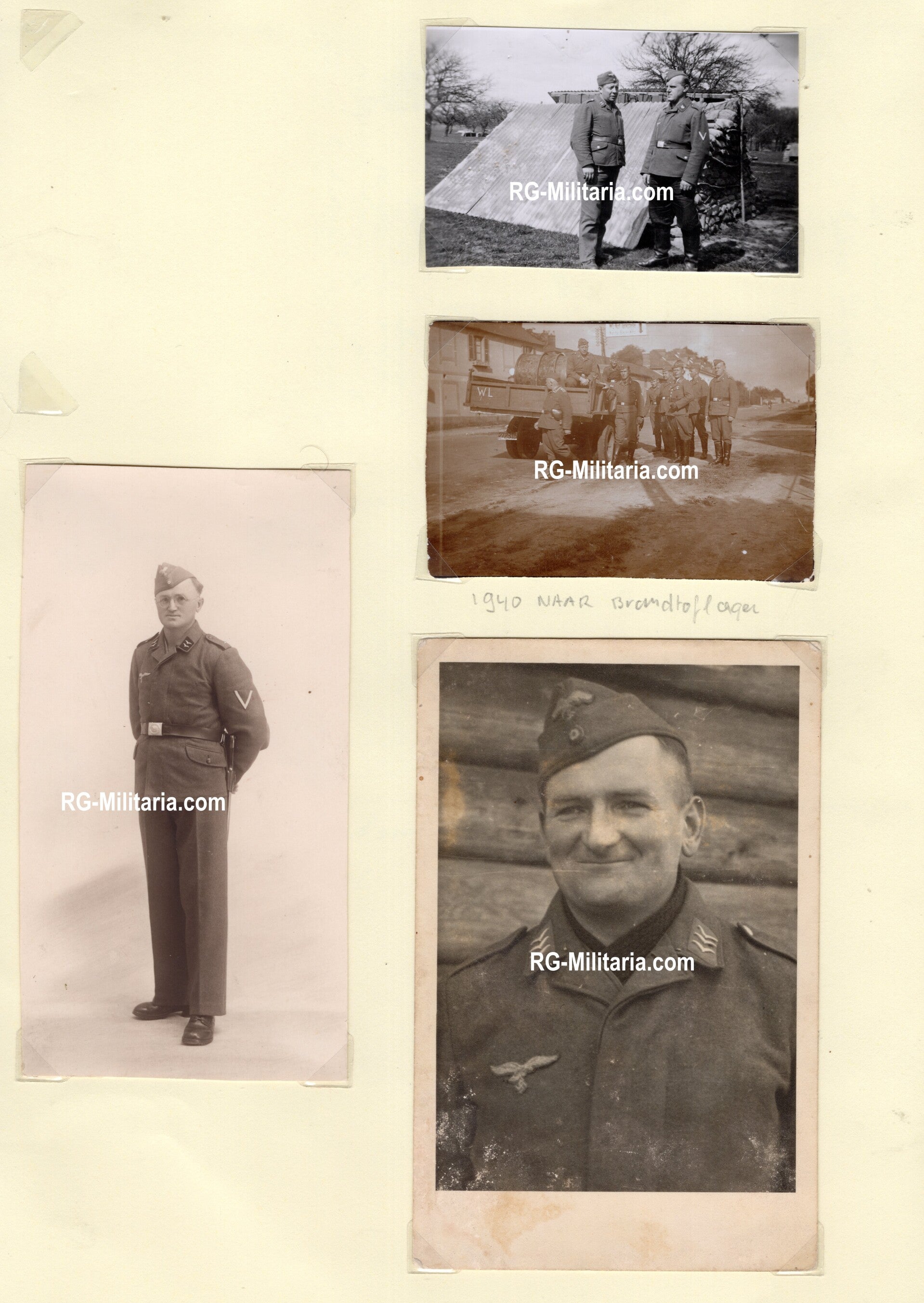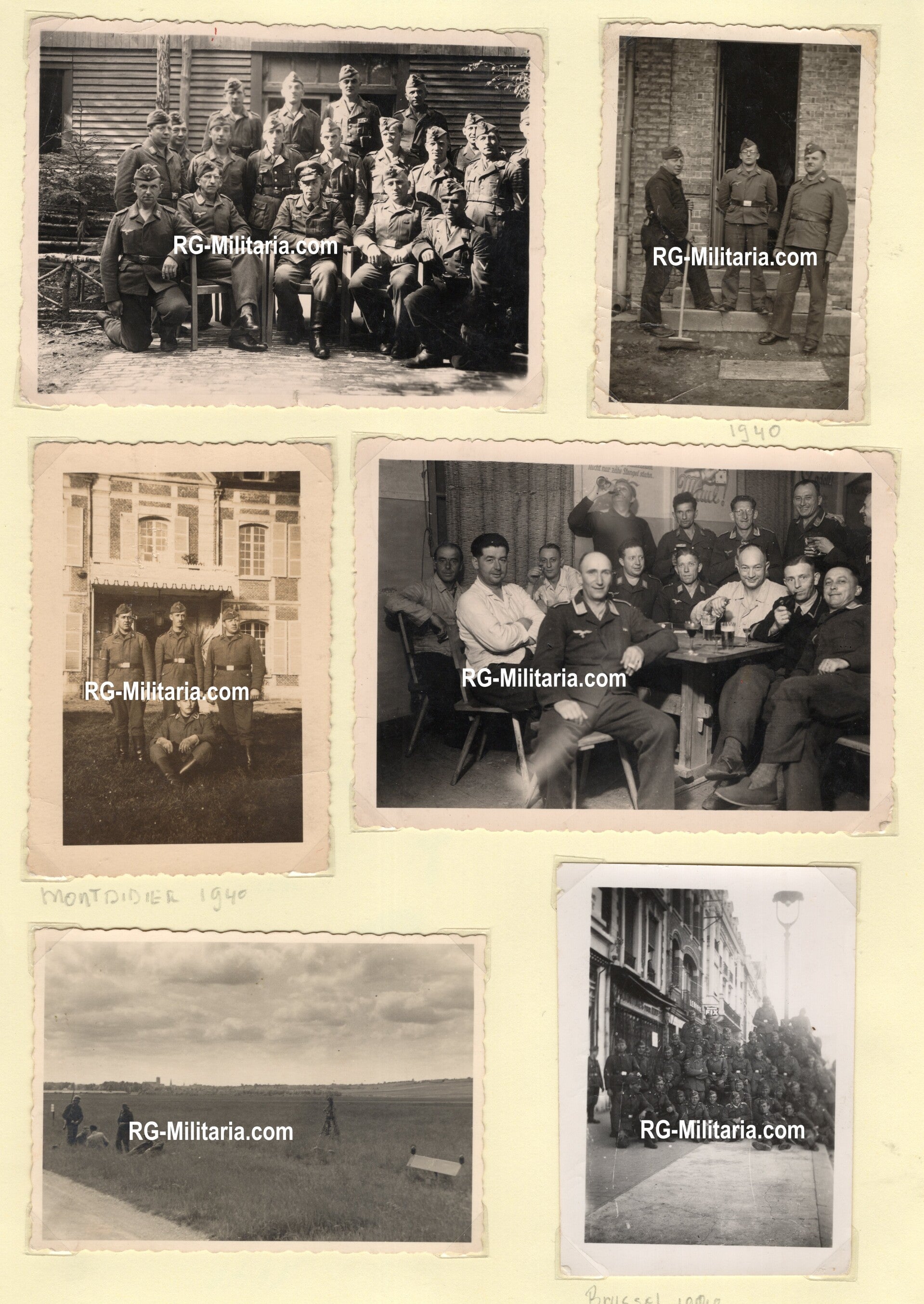 Fotoset van ongeveer 40 foto's van een Luftwaffe militair die in België (Brussel) en Frankrijk (Montdidier & Deschamps) gestationeerd was. De fotos zijn op modern papier gezet met fotohoekjes en kunnen verwijderd worden.