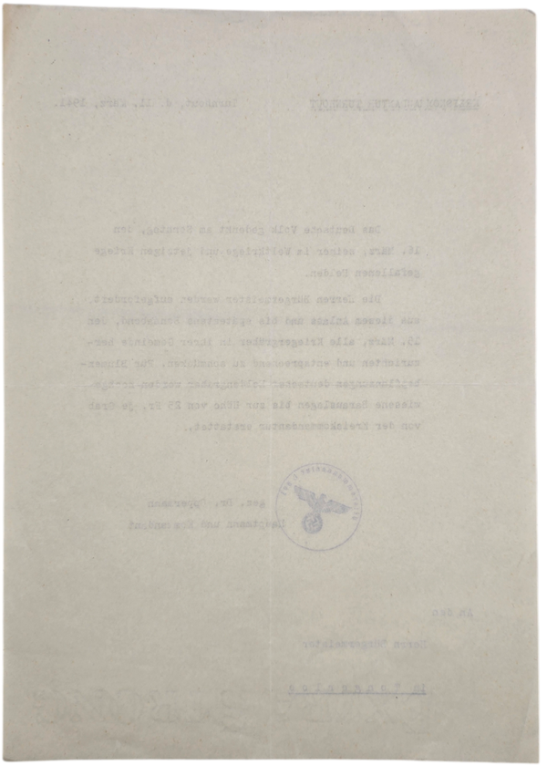 Original WW2 Belgian Document - Kreiskommandantur Turnhout remembering the fallen soldiers, Tongerloo (1941)