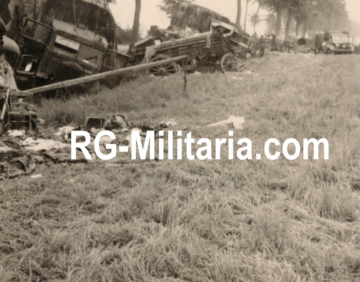 Interesting photo grouping with 58 pictures of the Blitzkrieg of the German army in the Netherlands, Belgium, and France in May 1940. This is a photo series made by a soldier of the SS Leibstandarte Adolf Hitler (1. SS-Panzer-Division Leibstandarte-SS Adolf Hitler). The photo series shows pictures made in the Netherlands in the region of Rotterdam and The Hague. In one if the pictures Sepp Dietrich could be seen. A few graveyard and field grave pictures in the series also. It is an interesting set to research. Many interesting details like vehicles and SS camouflage uniforms etc.