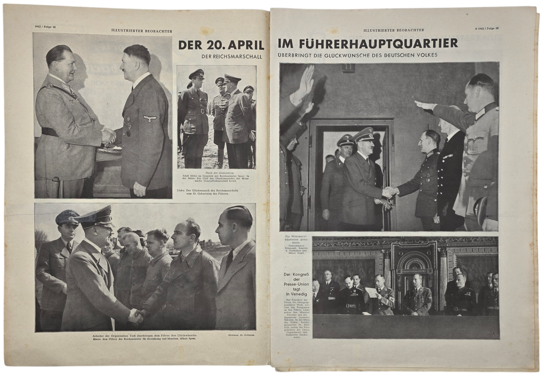 Inside an article about Hitler's birthday in the Fuhrerhauptquartier in 1942. On the cover is a picture of Hitler and Hermann Göring.