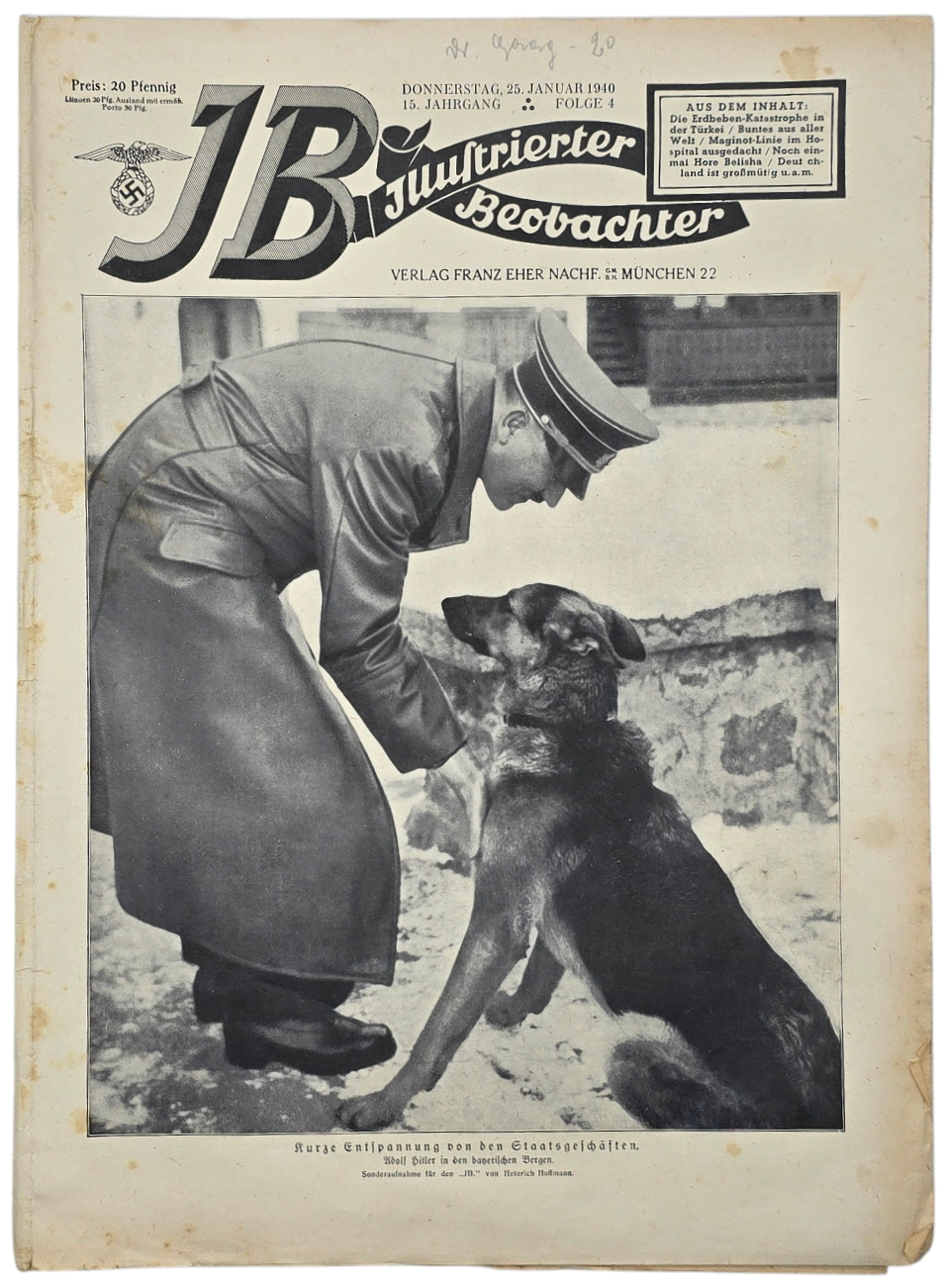 Original WW2 German Magazine - Illustrierter Beobachter 15th Year No. 4, Hitler with his dog Blondi (1940)