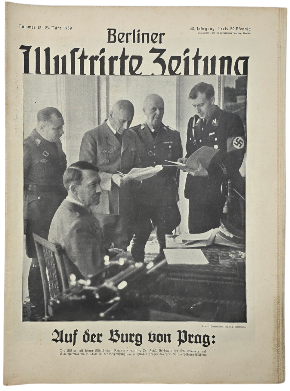Original WW2 German Magazine - Berliner Illustrirte Zeitung 48th Year No. 12, Adolf Hitler on Prague (1939)
