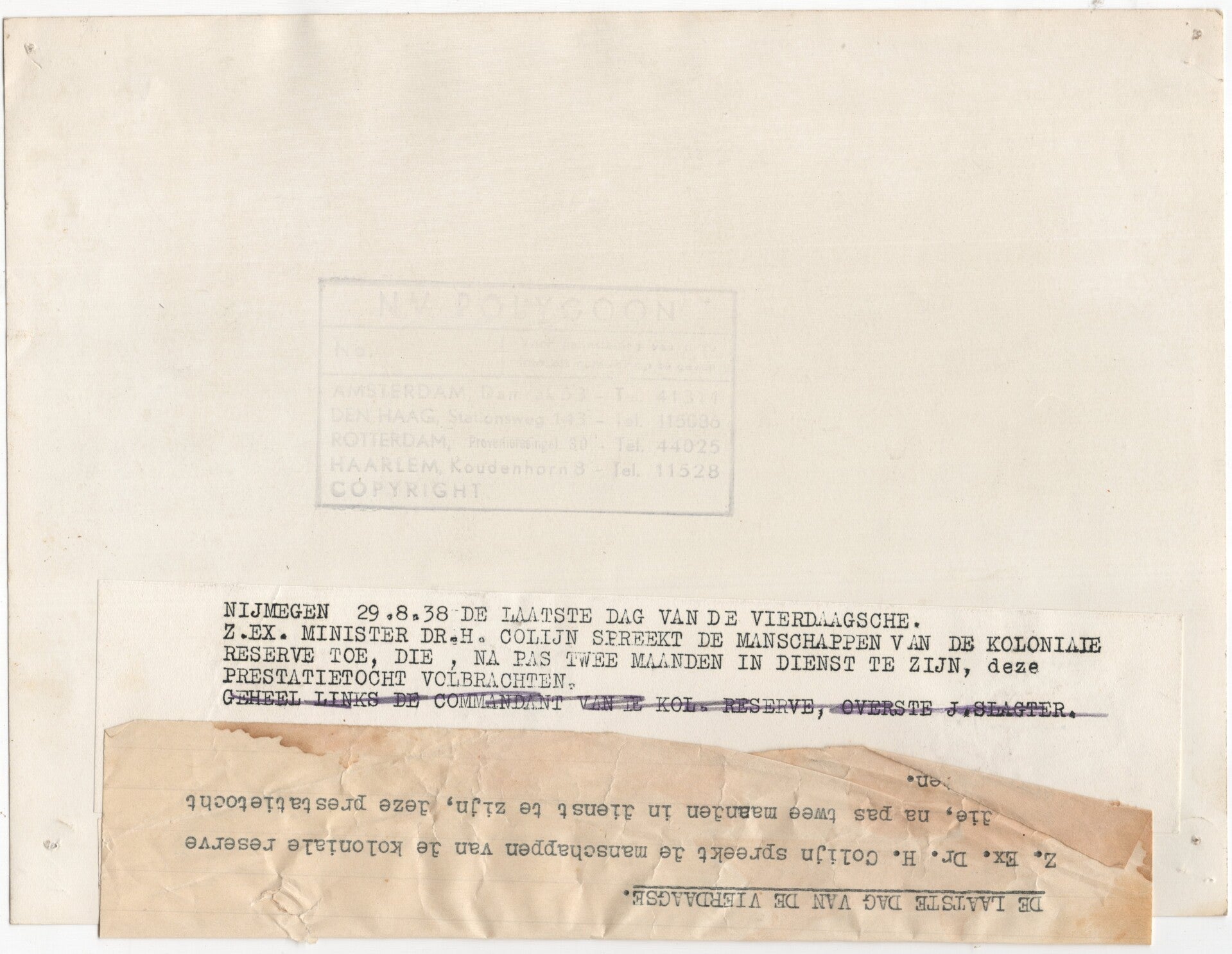 Originele Wo2 Nederlandse Persfoto - Minister Dr. H. Colijn spreekt de KNIL troepen toe voor de vierdaagse, Nijmegen (1938)