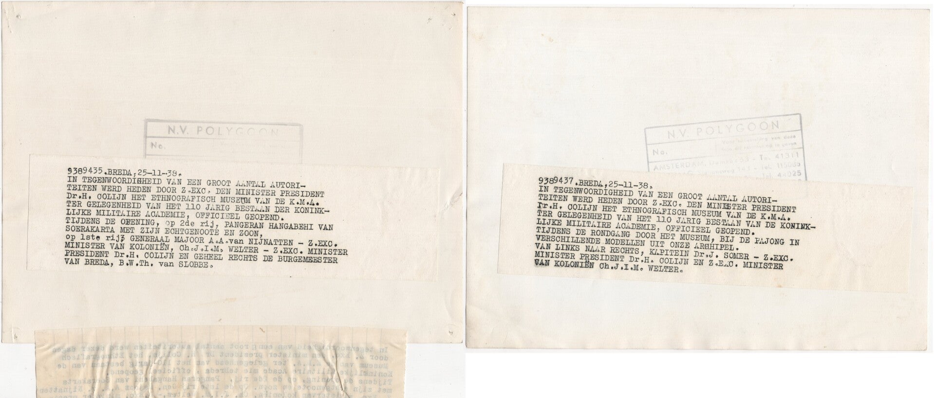 Originele Wo2 Nederlandse Persfoto - Minister President Dr. H. Colijn bezoekt het Ethnografisch Museum van de KMA Koninklijke Militaire Academie in Breda (1938)